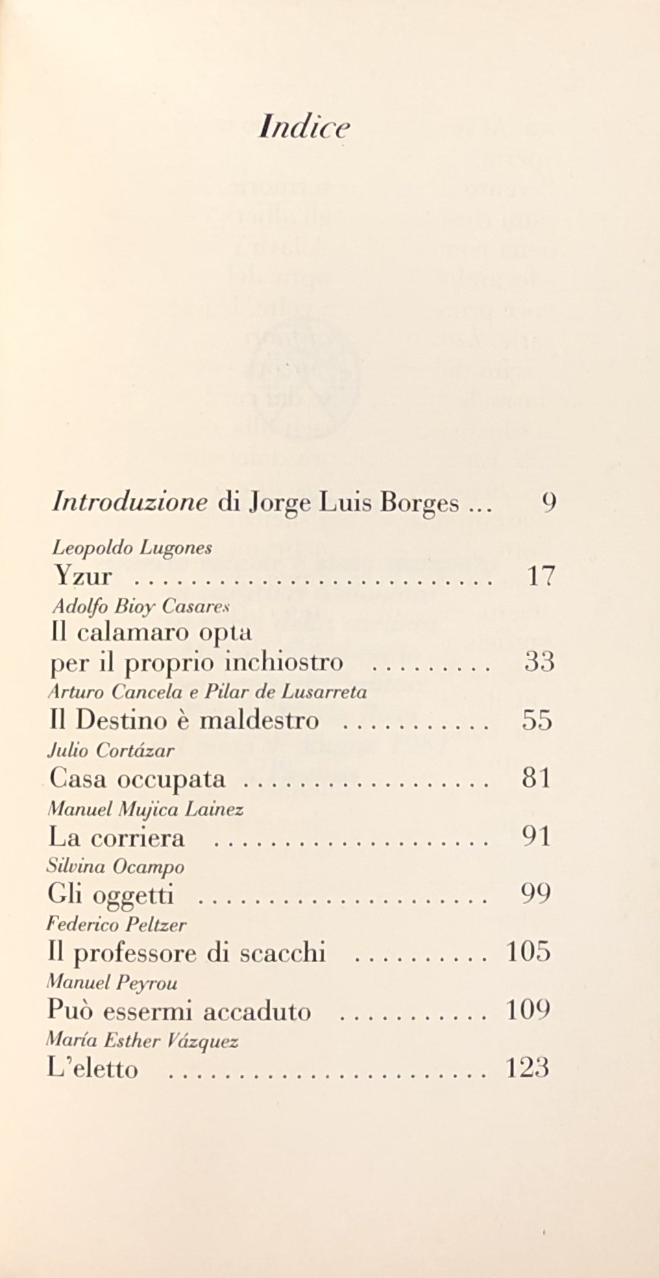 Volume stampato in caratteri bodoniani su carta della cartiera Miliani di Fabriano. Scritti di: Bioy Casares, Cancela, Cortazar, de Lusarreta, Lugones, Mujica Lainez, Ocampo, Peltzer, Peyrou, Vazquez.