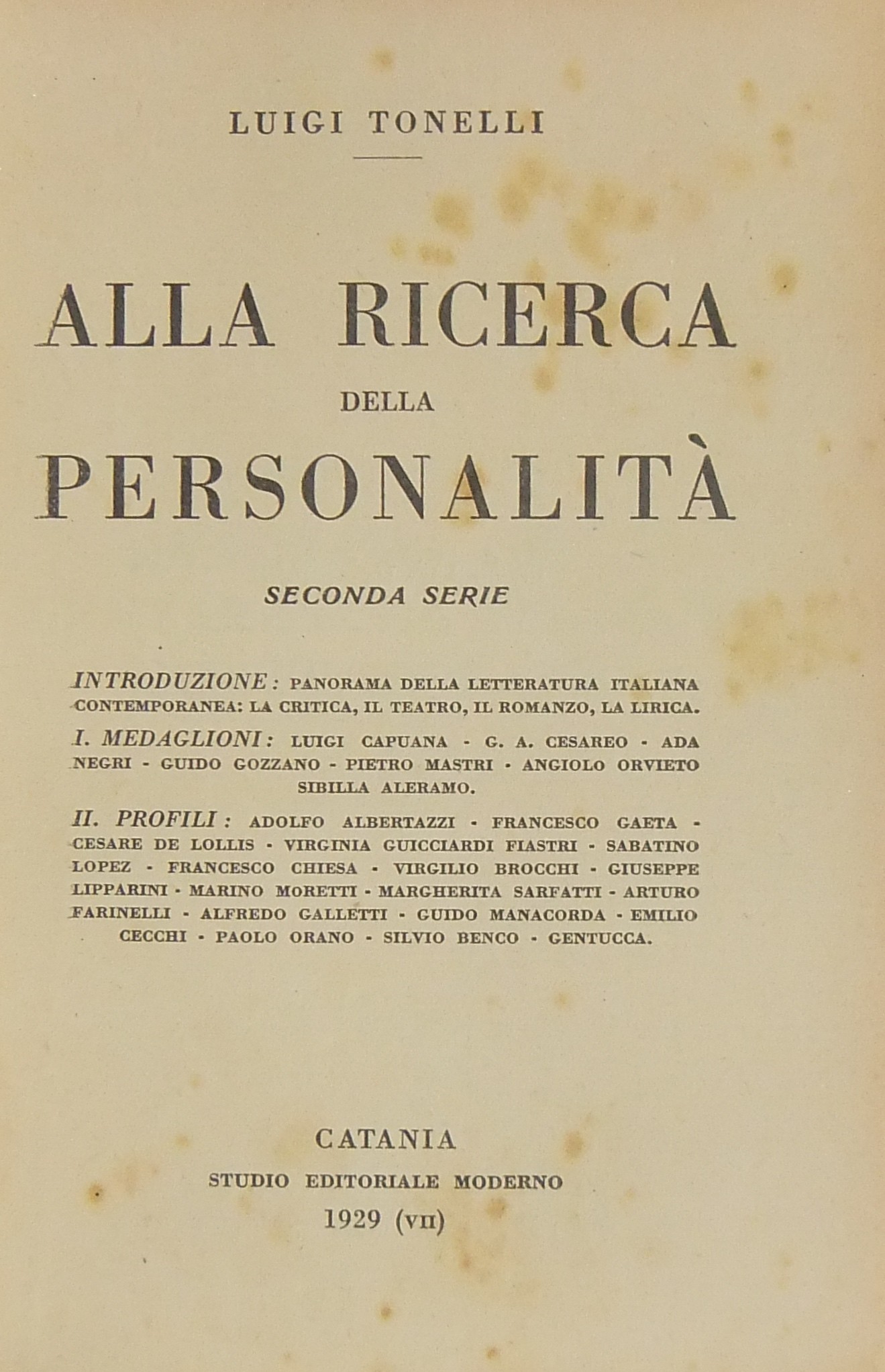 Alla ricerca della personalità . Seconda serie Introduzione medaglioni profili