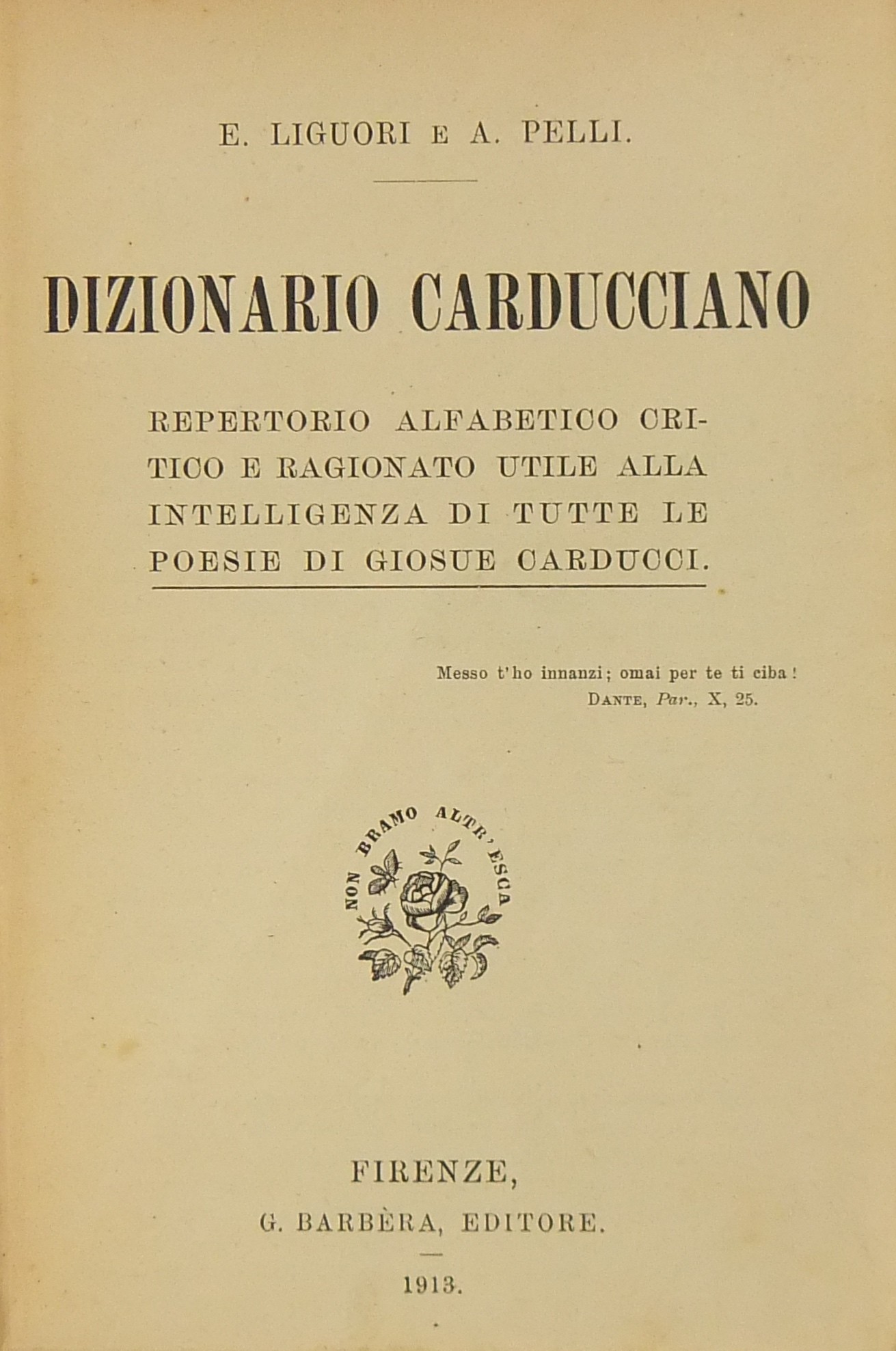 Dizionario carducciano. Repertorio alfabetico critico e ragionato utile alla intelligenza di tutte le poesie di Giosue Carducci