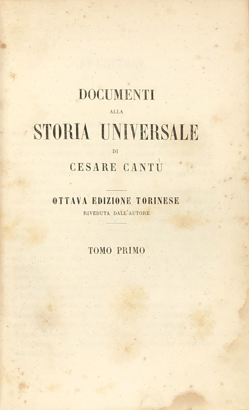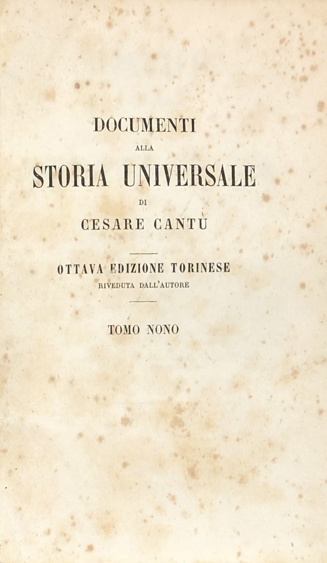 Documenti alla storia universale. Vol. I - Sulle religioni. Vol. II - Sulla filosofia. Vol. III - Legislazione e diplomazia. Vol. IV - Sulla guerra. Vol. V - Della letteratura. Vol. VI - Dei monumenti di archeologia e belle arti. Vol. VII - Cronologia. Vol. VIII - Geografia politica. Vol. IX - Biografie