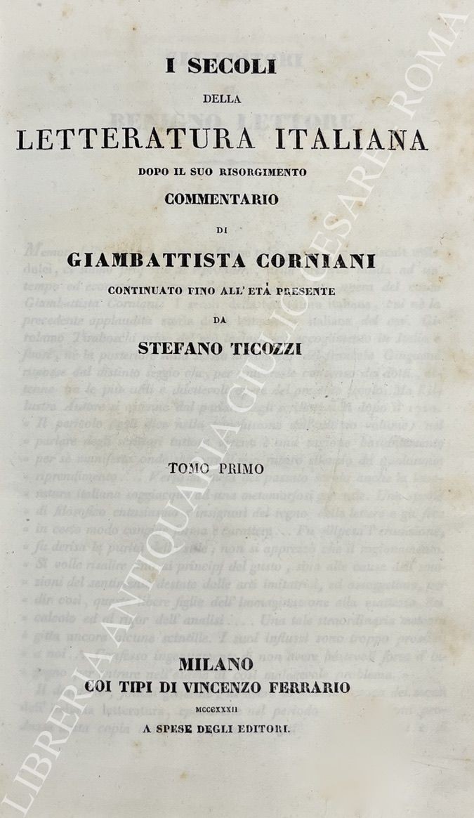 I secoli della letteratura italiana dopo il suo risorgimento. Commentario di Giambattista Corniani continuato fino all'età presente da Stefano Ticozzi