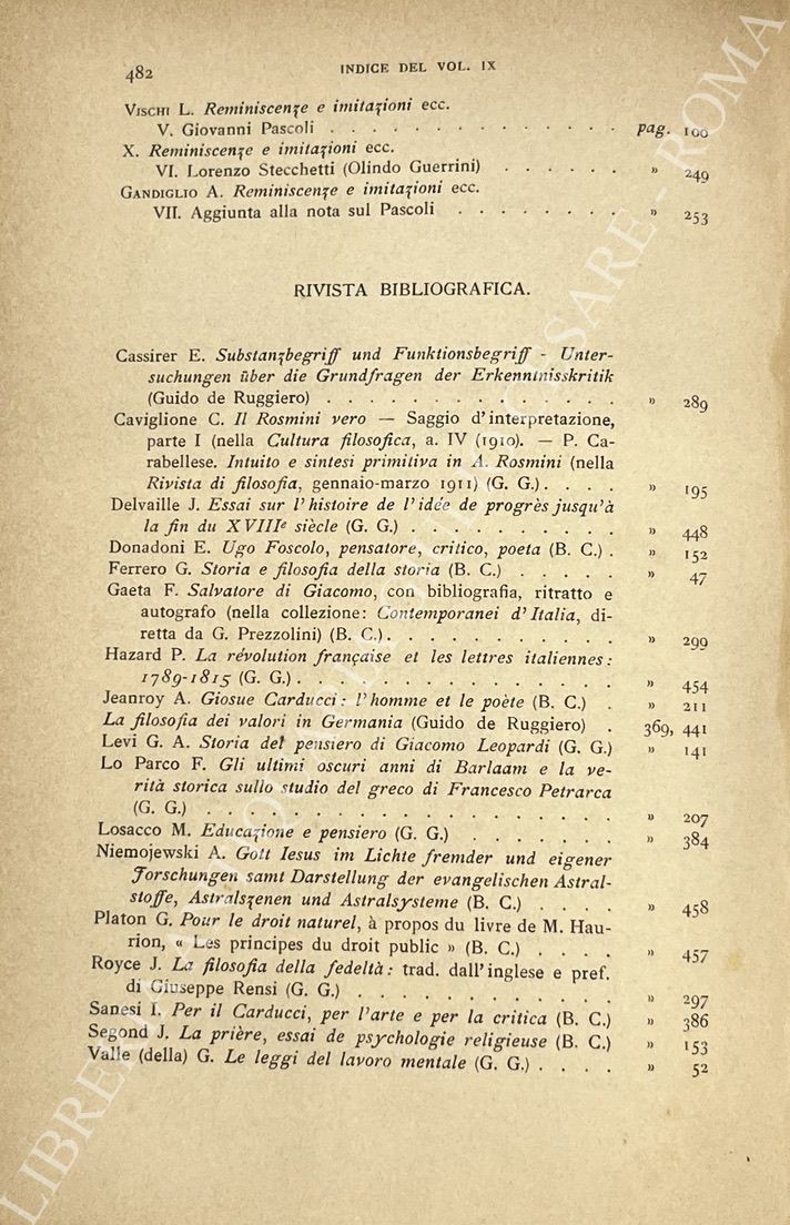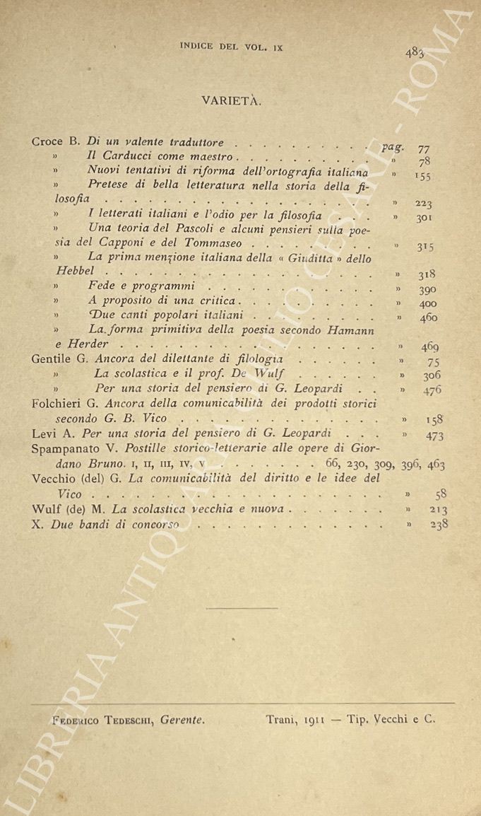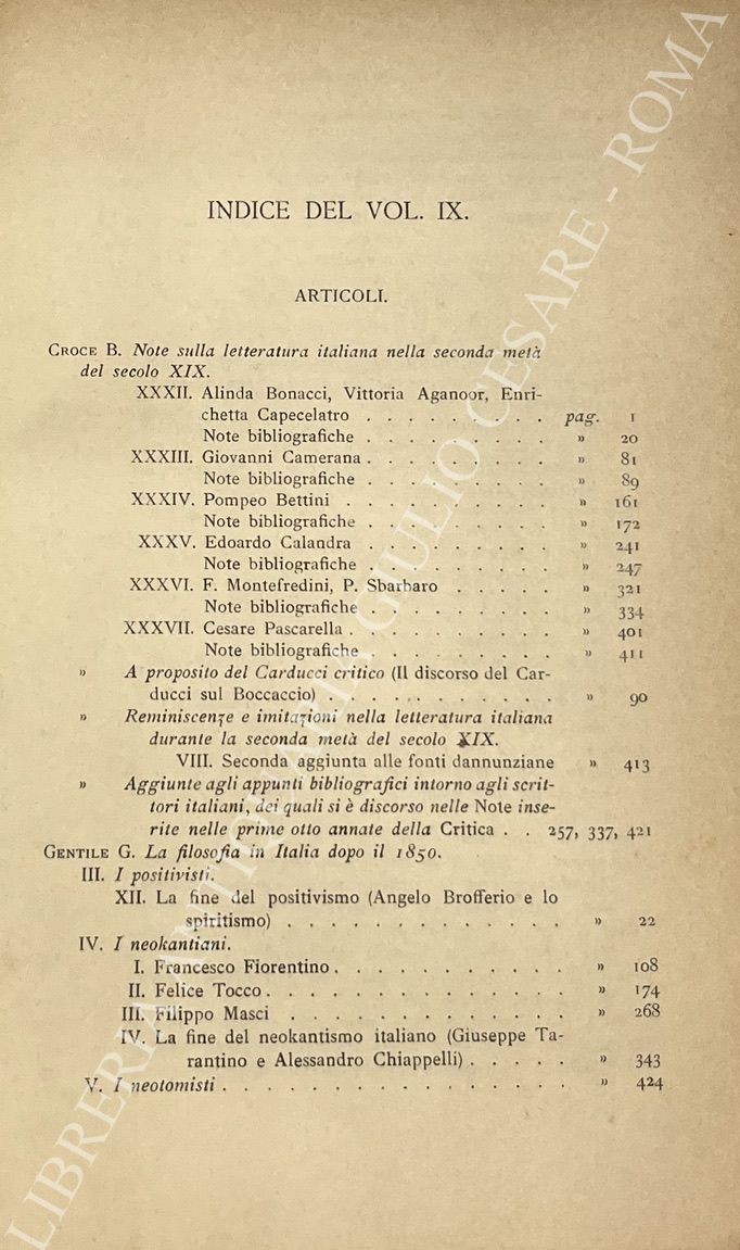 La Critica. Rivista di letteratura, storia e filosofia. Vol. IX