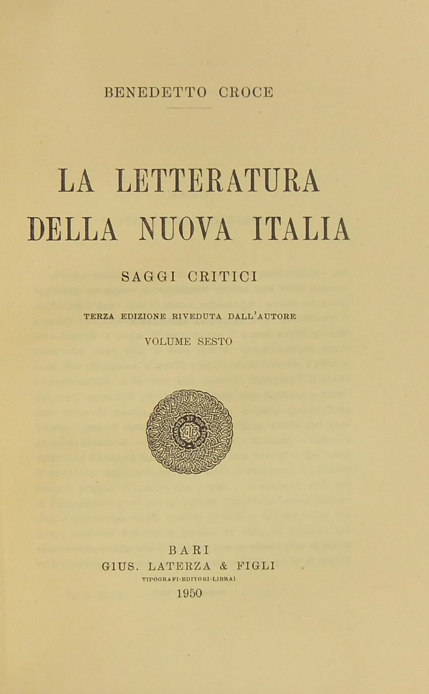 La letteratura della nuova Italia. Saggi critici. Volume sesto