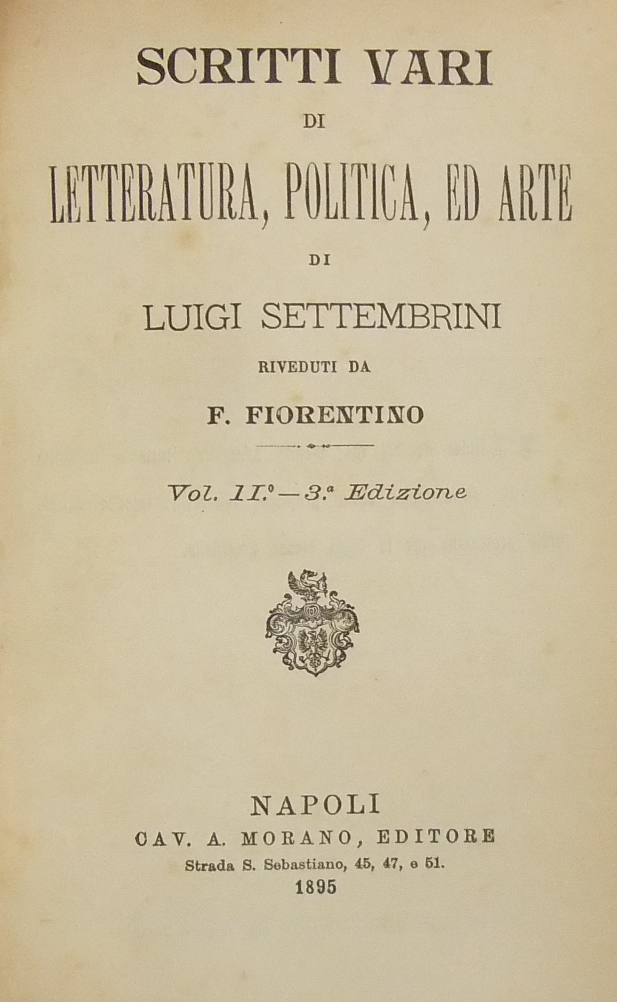 Scritti vari di letteratura politica ed arte. Riveduti da F. Fiorentino