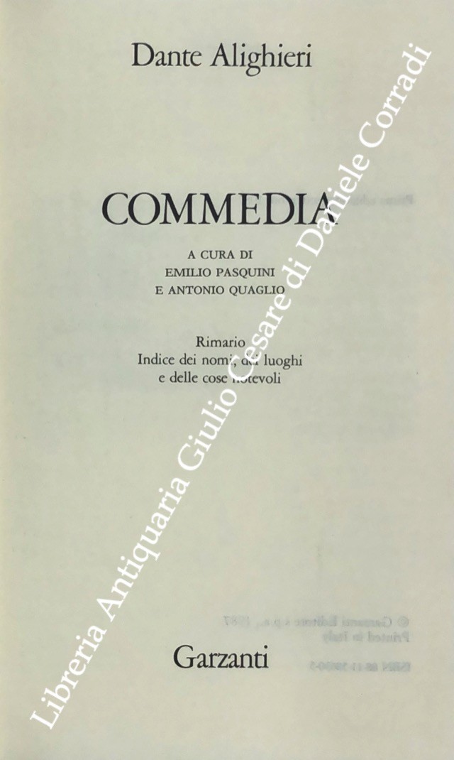 Commedia. A cura di Emilio Pasquini e Antonio Quaglio. Rimario, indice dei nomi, dei luoghi e delle cose notevoli