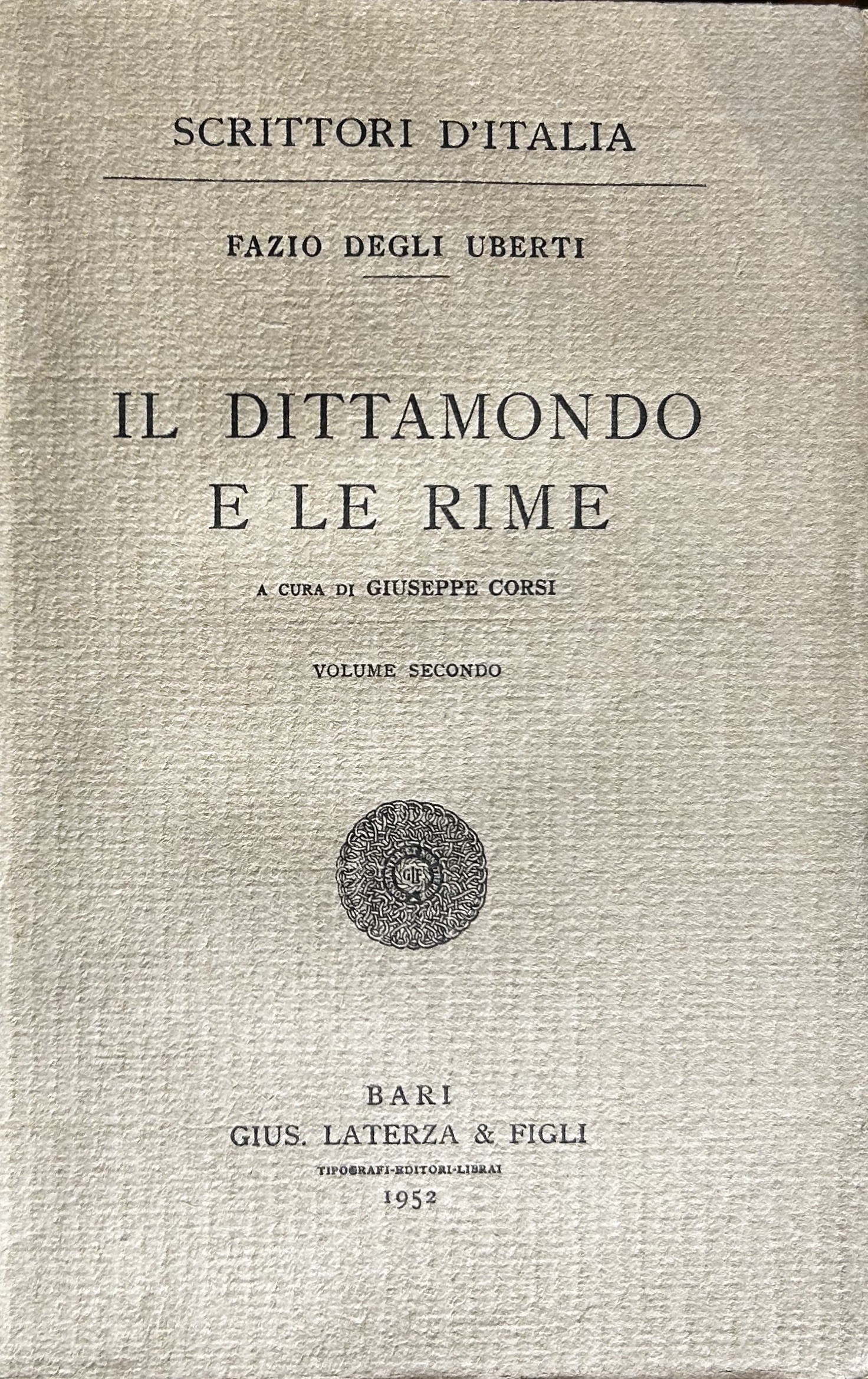 Il Dittamondo e le rime. A cura di Giuseppe Corsi. Vol. I - Il dittamondo; Vol. II - Le rime; Nota filologica