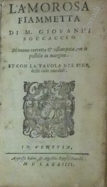 L'amorosa Fiammetta. Di nuovo corretta e ristampata, con le postille in margine. et con la tavola nel fine, delle cose notabili