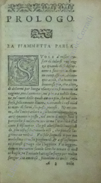 Capilettera ornati e figurati busto ritratto del Boccaccio a fine volume