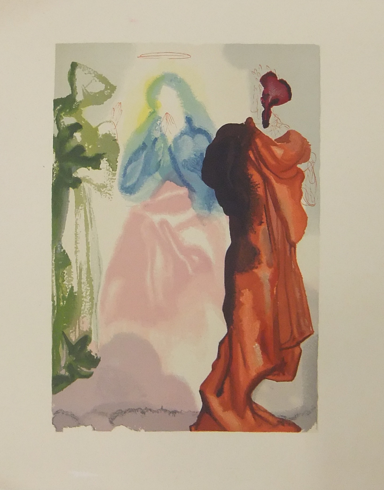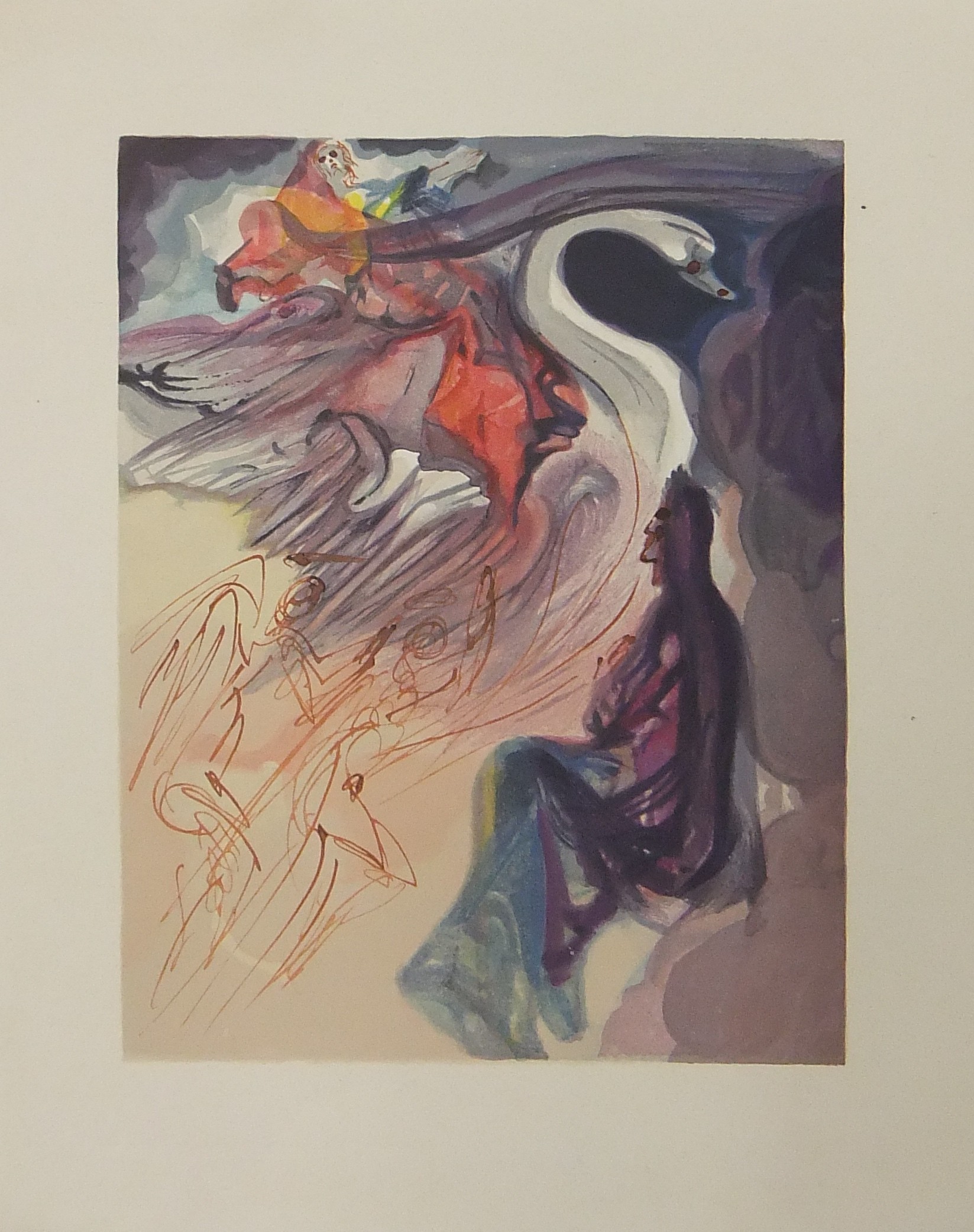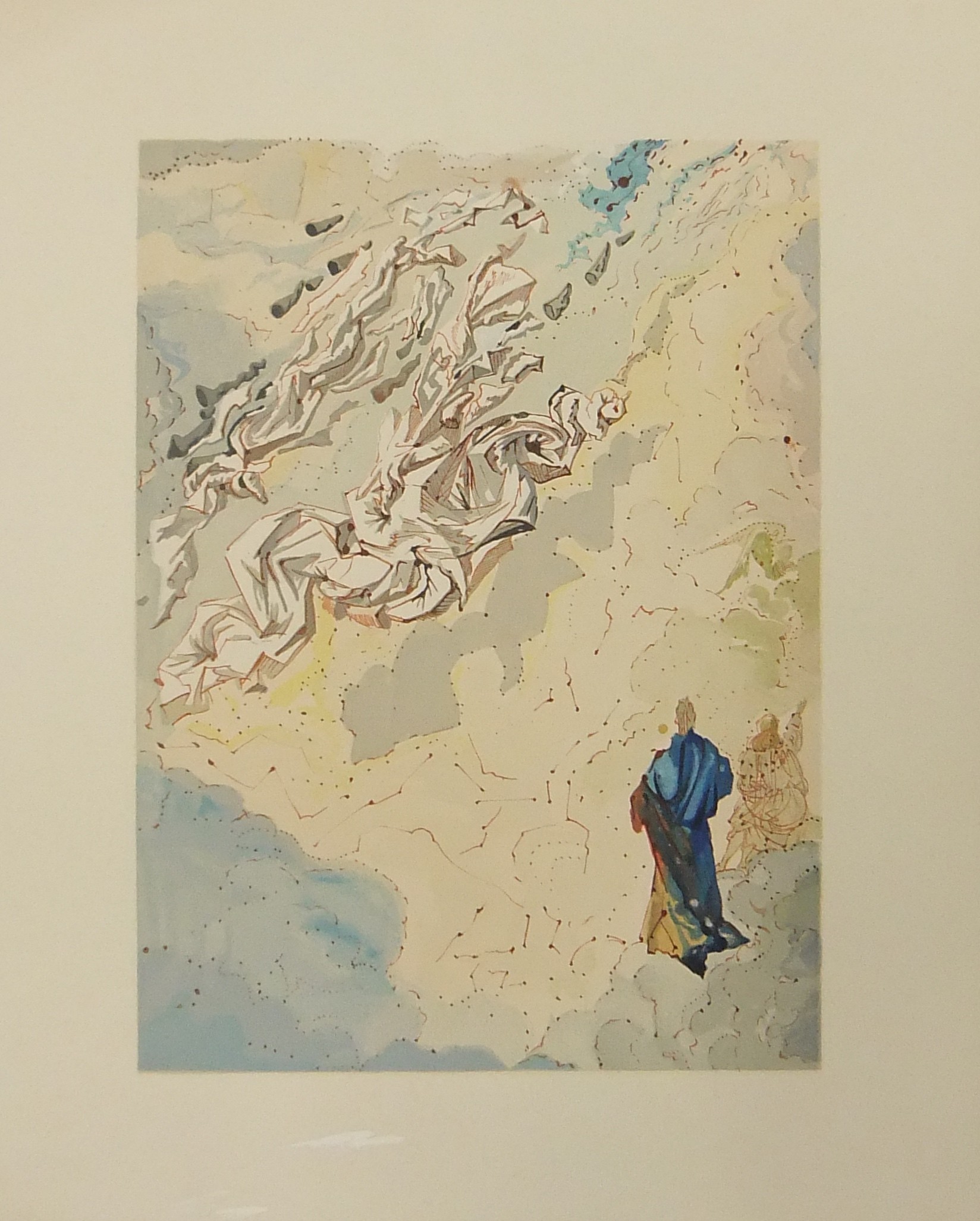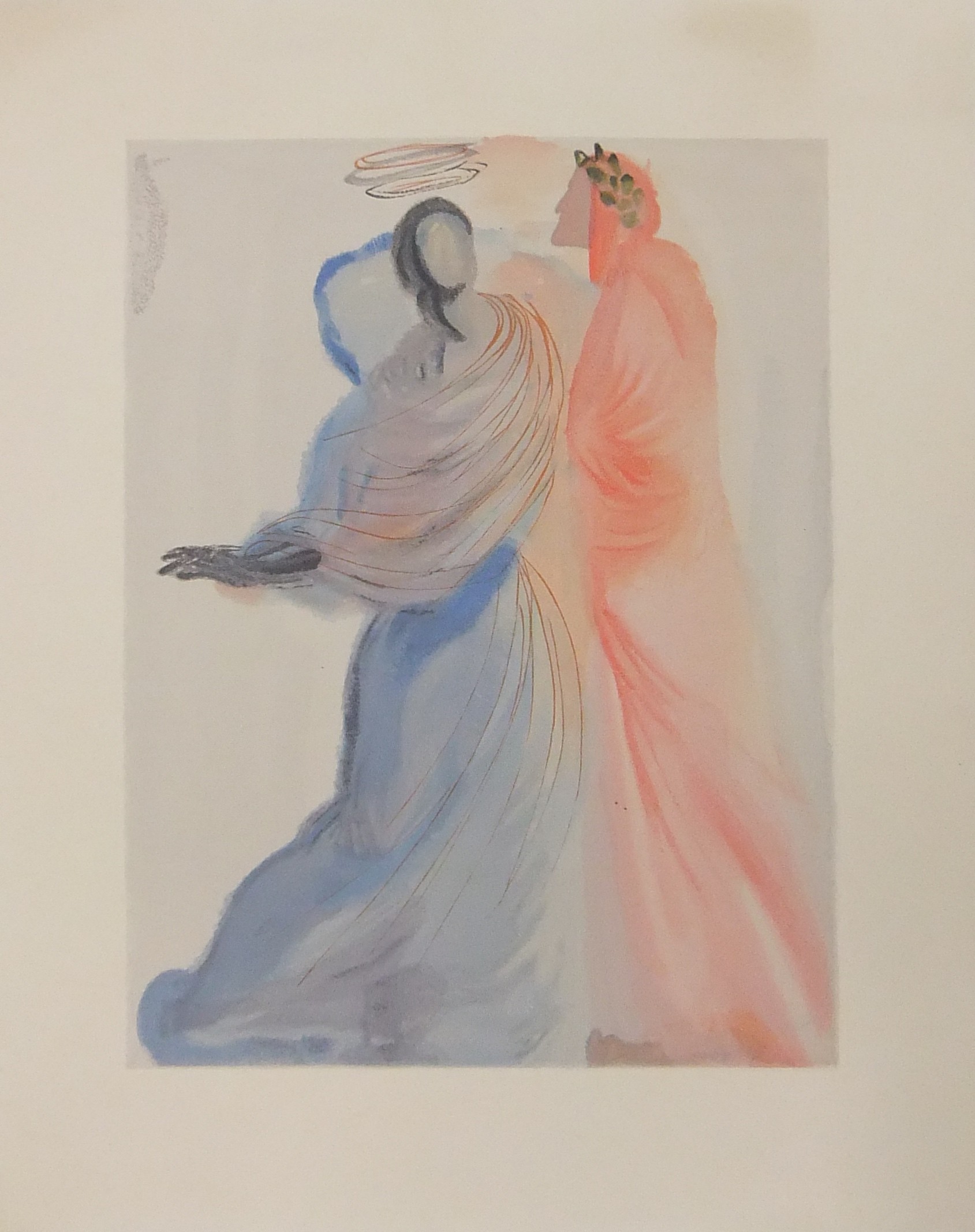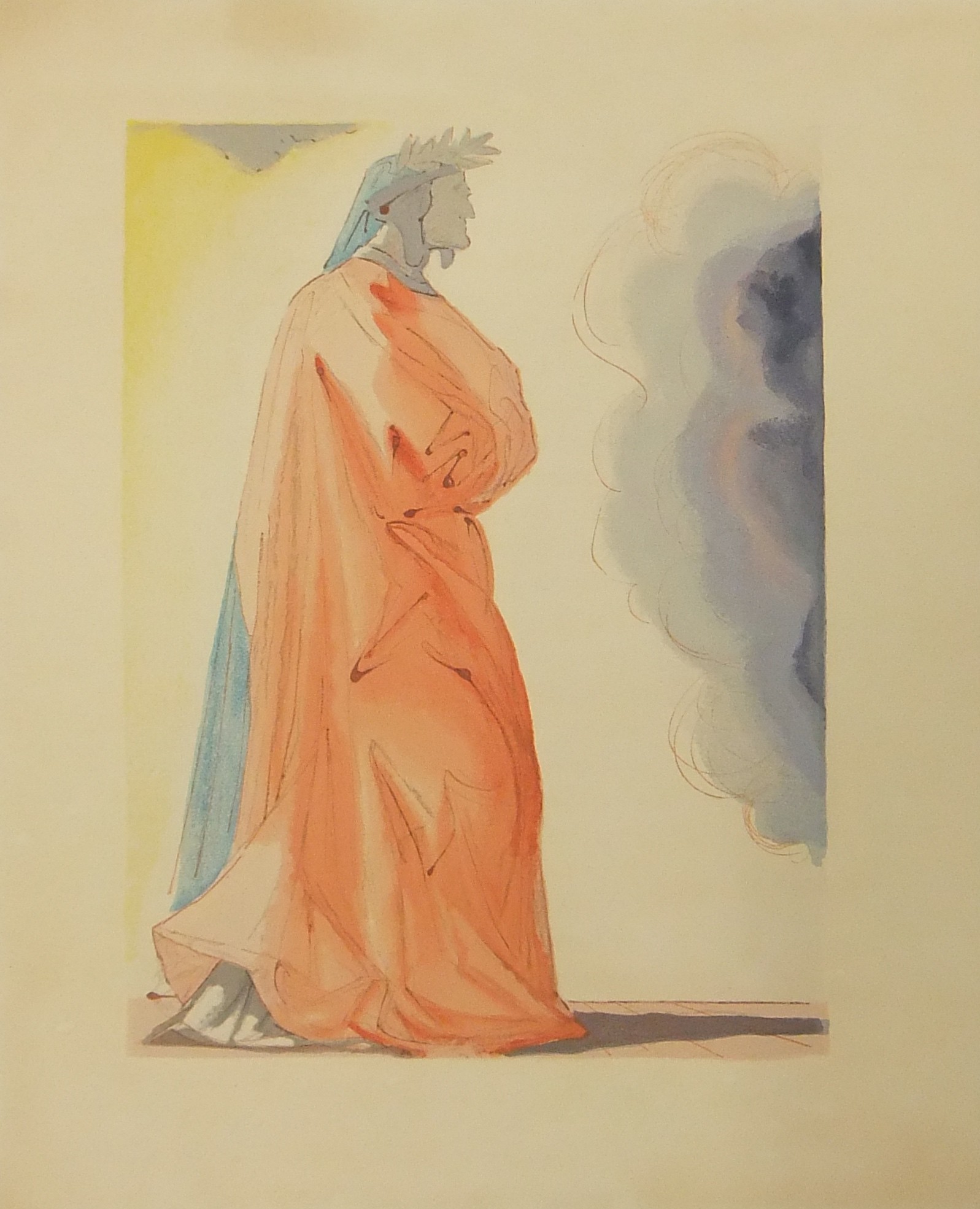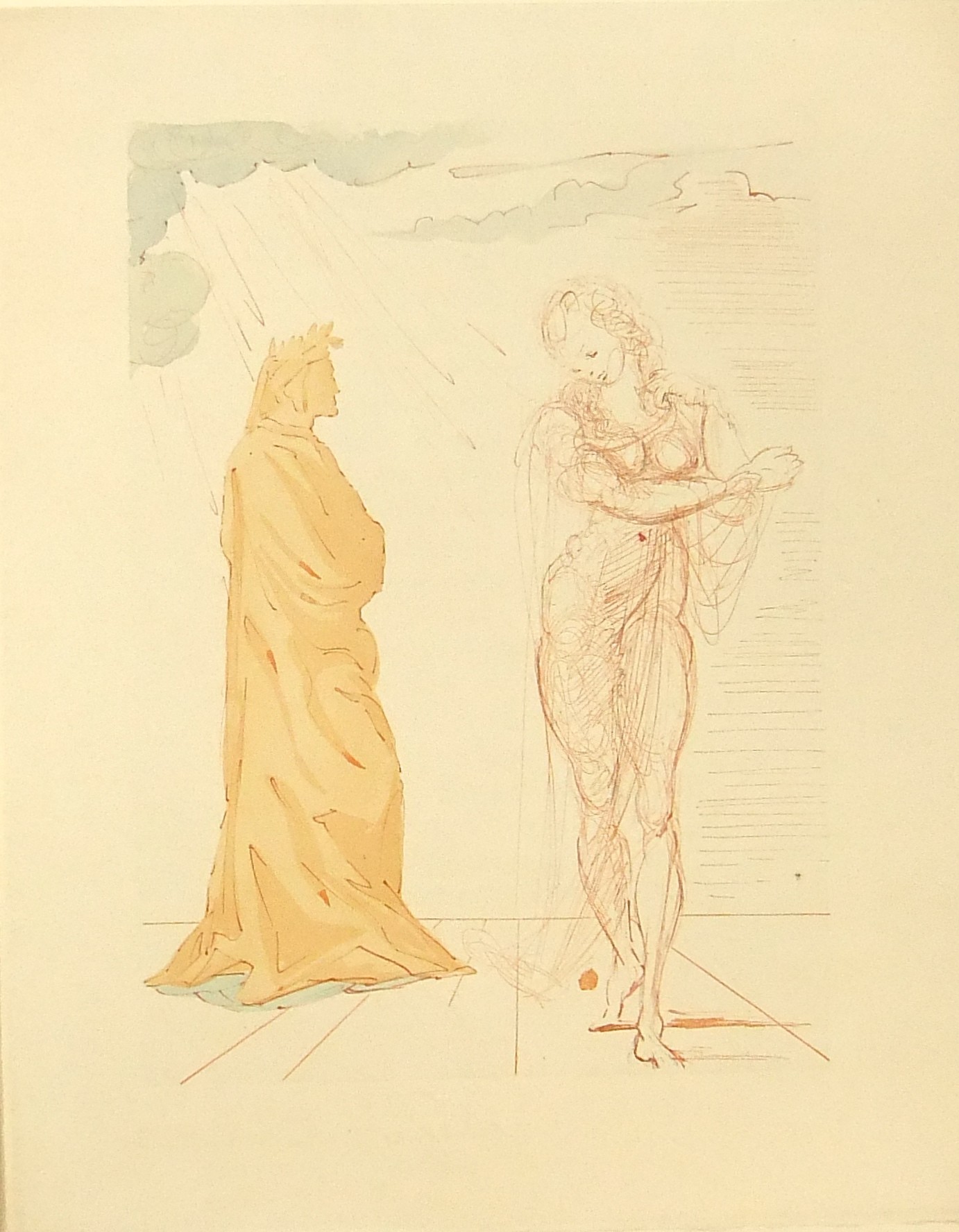 In occasione del 700° anniversario della nascita di Dante venne commissionata a Salvador Dalì l'illustrazione della Divina Commedia. Il Maestro impiegò 9 anni di lavoro per dar vita ai 100 acquarelli che verranno esposti a Parigi e trasposti in xilografia. Il Maestro Raymond Jacquet, sotto la diretta supervisione di Dalì, incise 3000 lastre di legno per imprimere in progressiva i 35 colori di ogni singola tavola su carta Rives. Confezione eseguita dalla Legatoria Torriani di Milano. Ns. esemplare numero 2600. Opera completa in 6 volumi