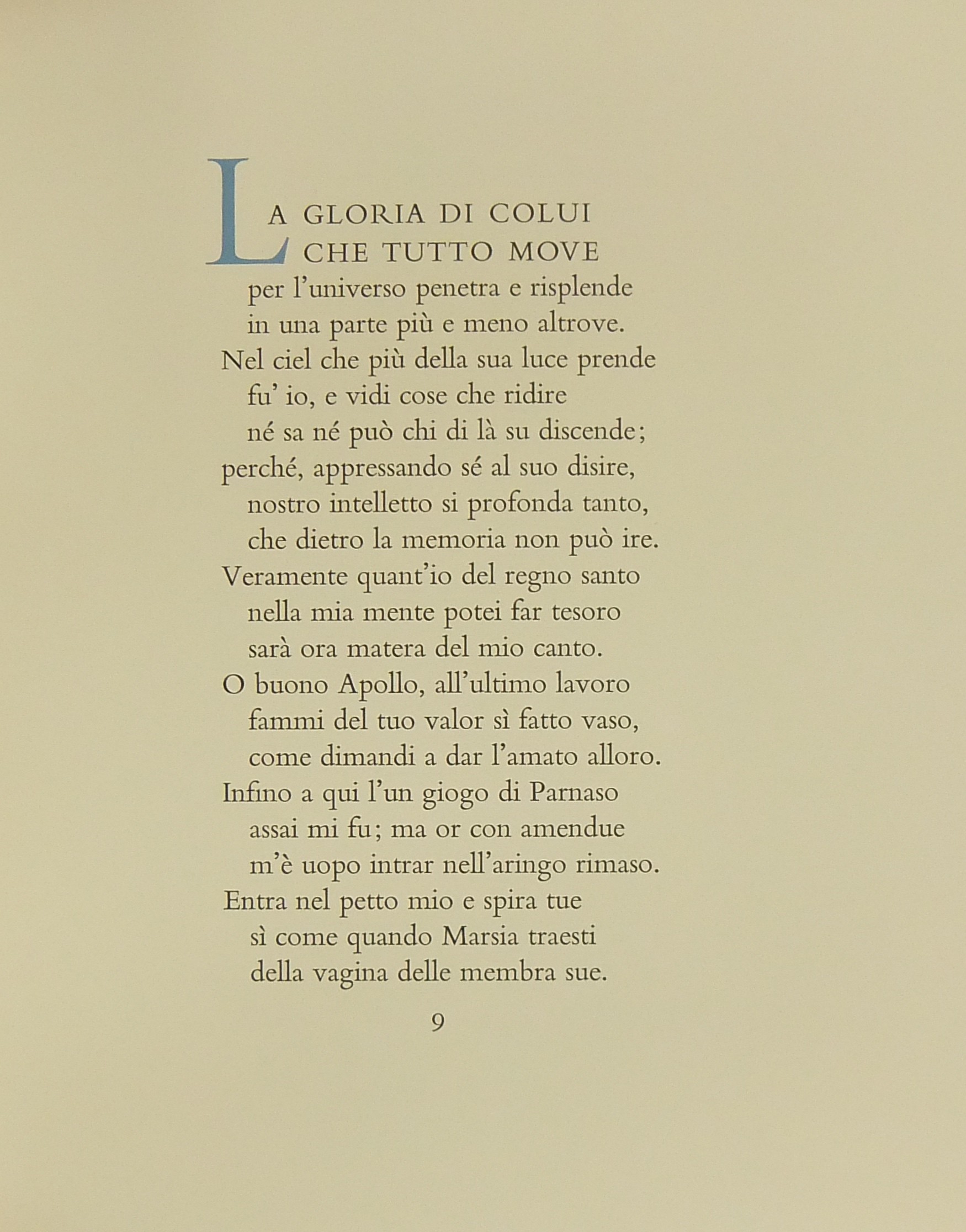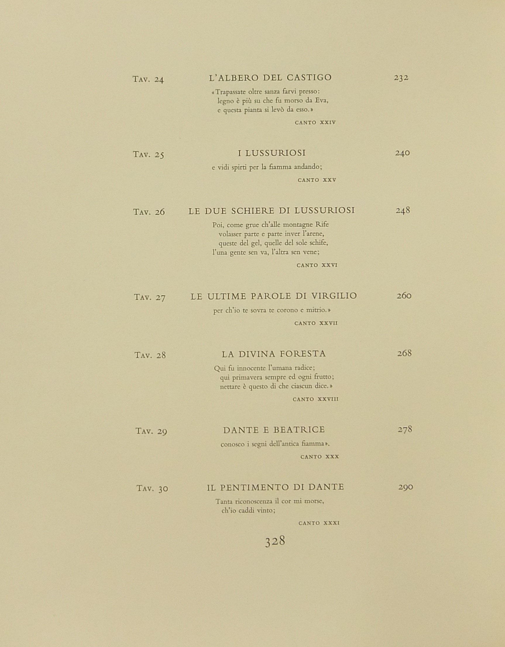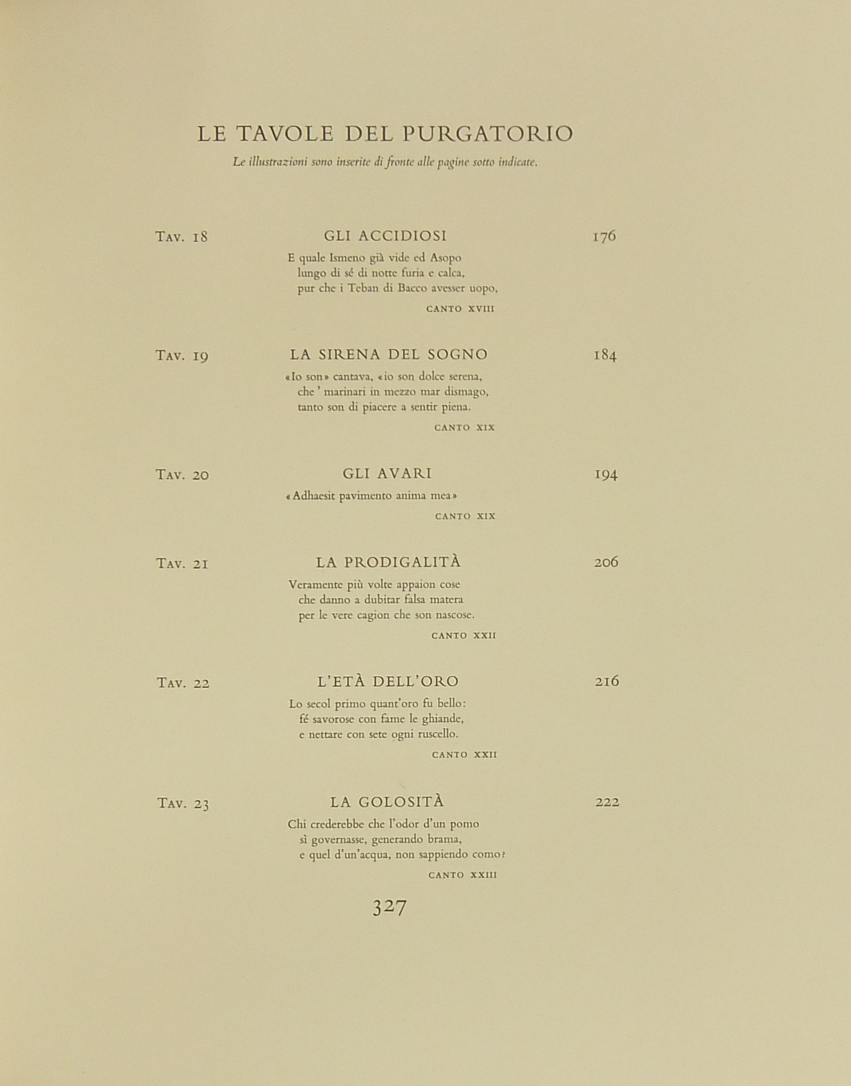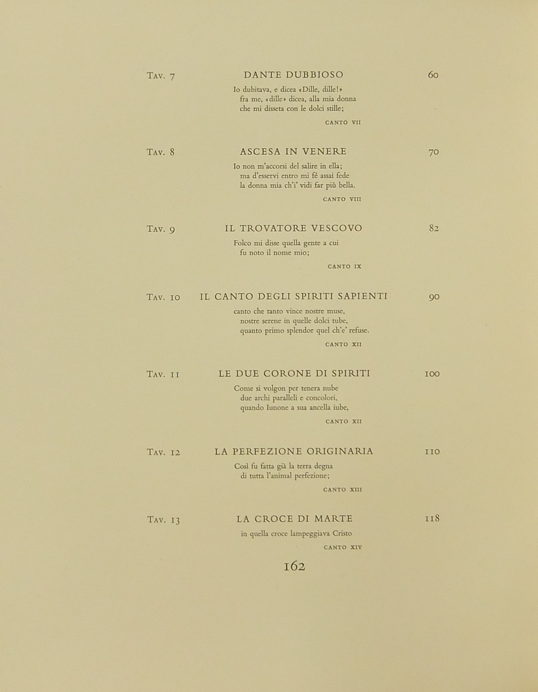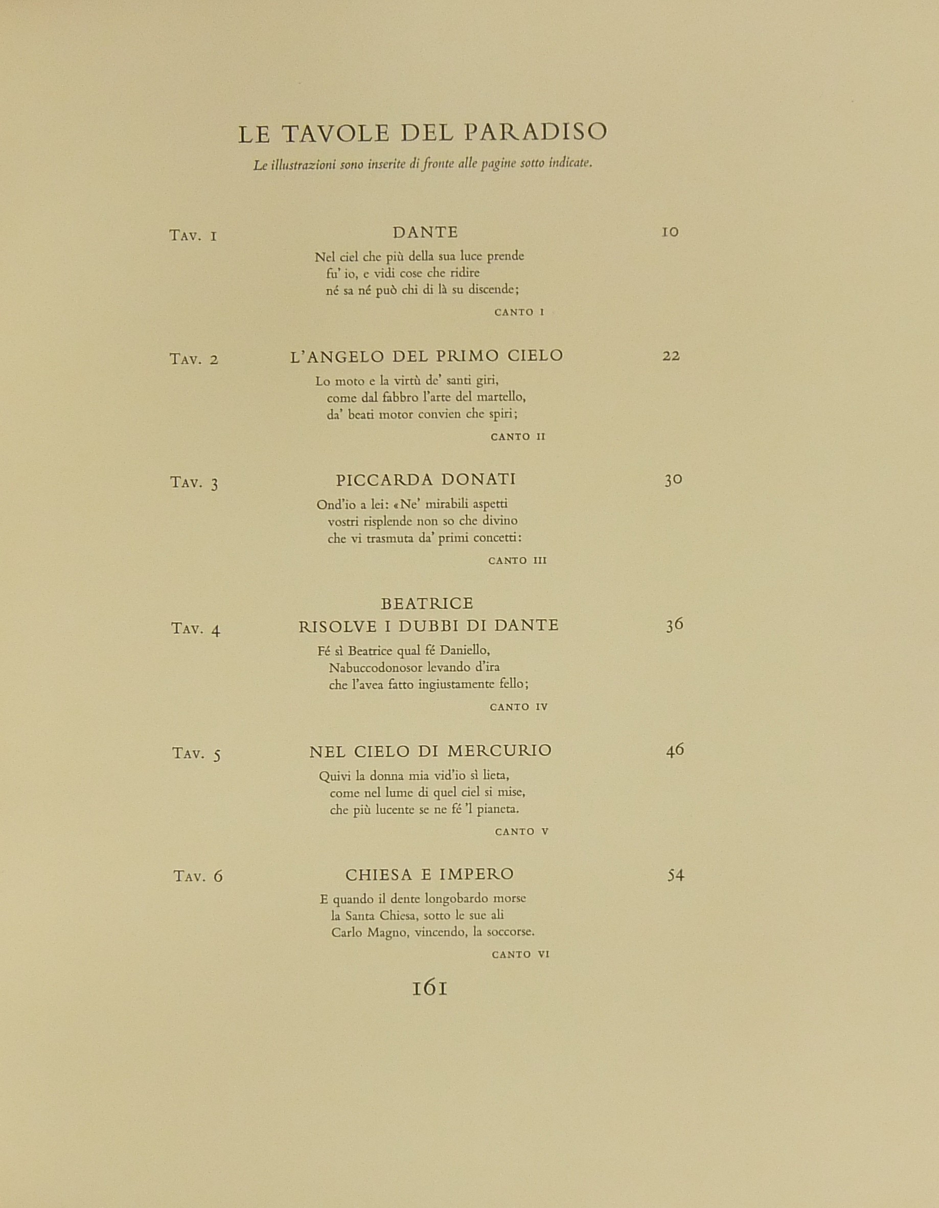 In occasione del 700° anniversario della nascita di Dante venne commissionata a Salvador Dalì l'illustrazione della Divina Commedia. Il Maestro impiegò 9 anni di lavoro per dar vita ai 100 acquarelli che verranno esposti a Parigi e trasposti in xilografia. Il Maestro Raymond Jacquet, sotto la diretta supervisione di Dalì, incise 3000 lastre di legno per imprimere in progressiva i 35 colori di ogni singola tavola su carta Rives. Confezione eseguita dalla Legatoria Torriani di Milano. Ns. esemplare numero 2600. Opera completa in 6 volumi