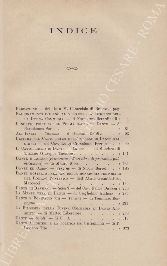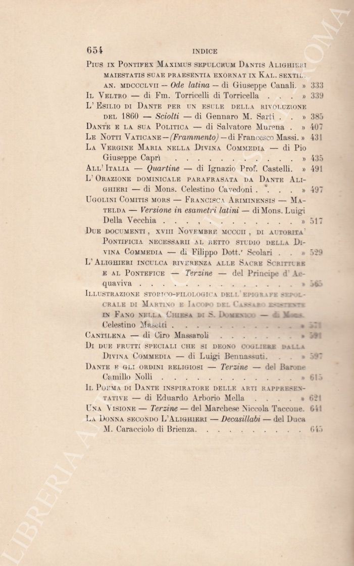 Omaggio a Dante Alighieri offerto dai cattolici italiani nel maggio 1865. Sesto centenario dalla sua nascita
