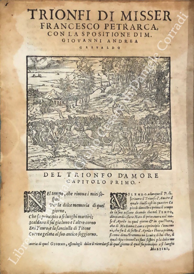 Il Petrarcha con l'espositione di M. Gio. Andrea Gesualdo nuovamente ristampato e con somma diligenza corretto et ornato di figure con doi ravole, una de' Sonetti e Canzoni e l'altra di tutte le cose degne di Memoria che in essa Espositione si contengono