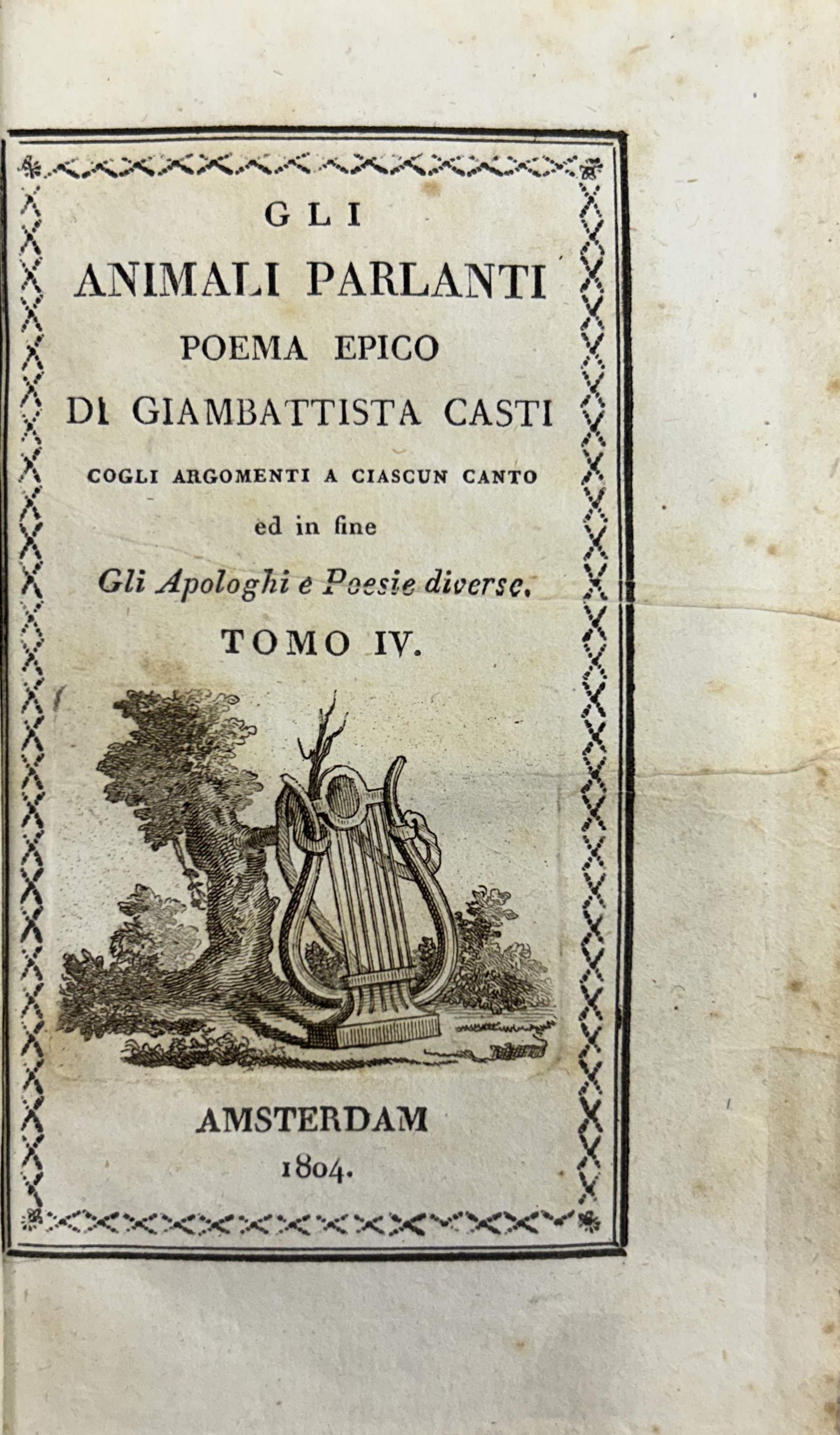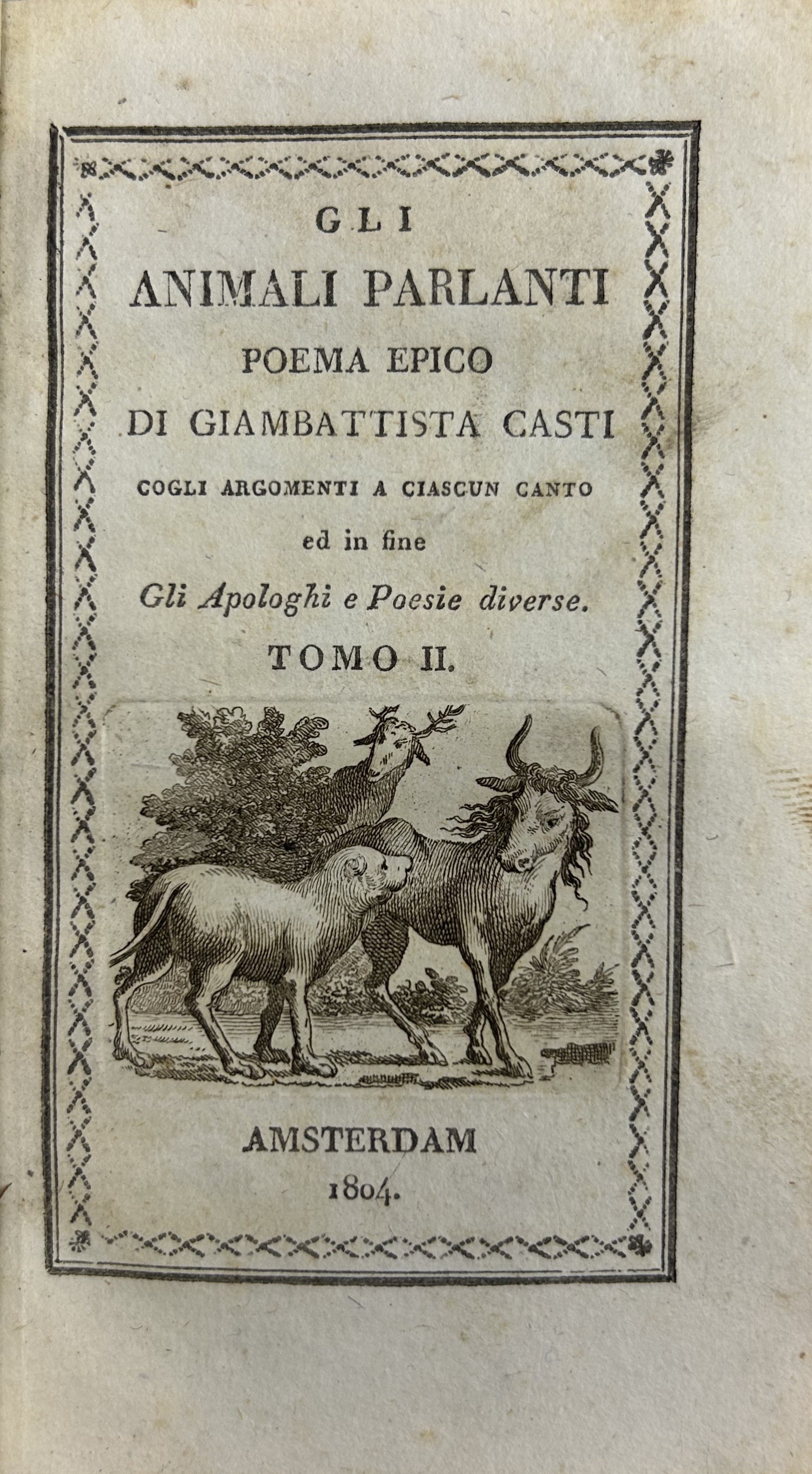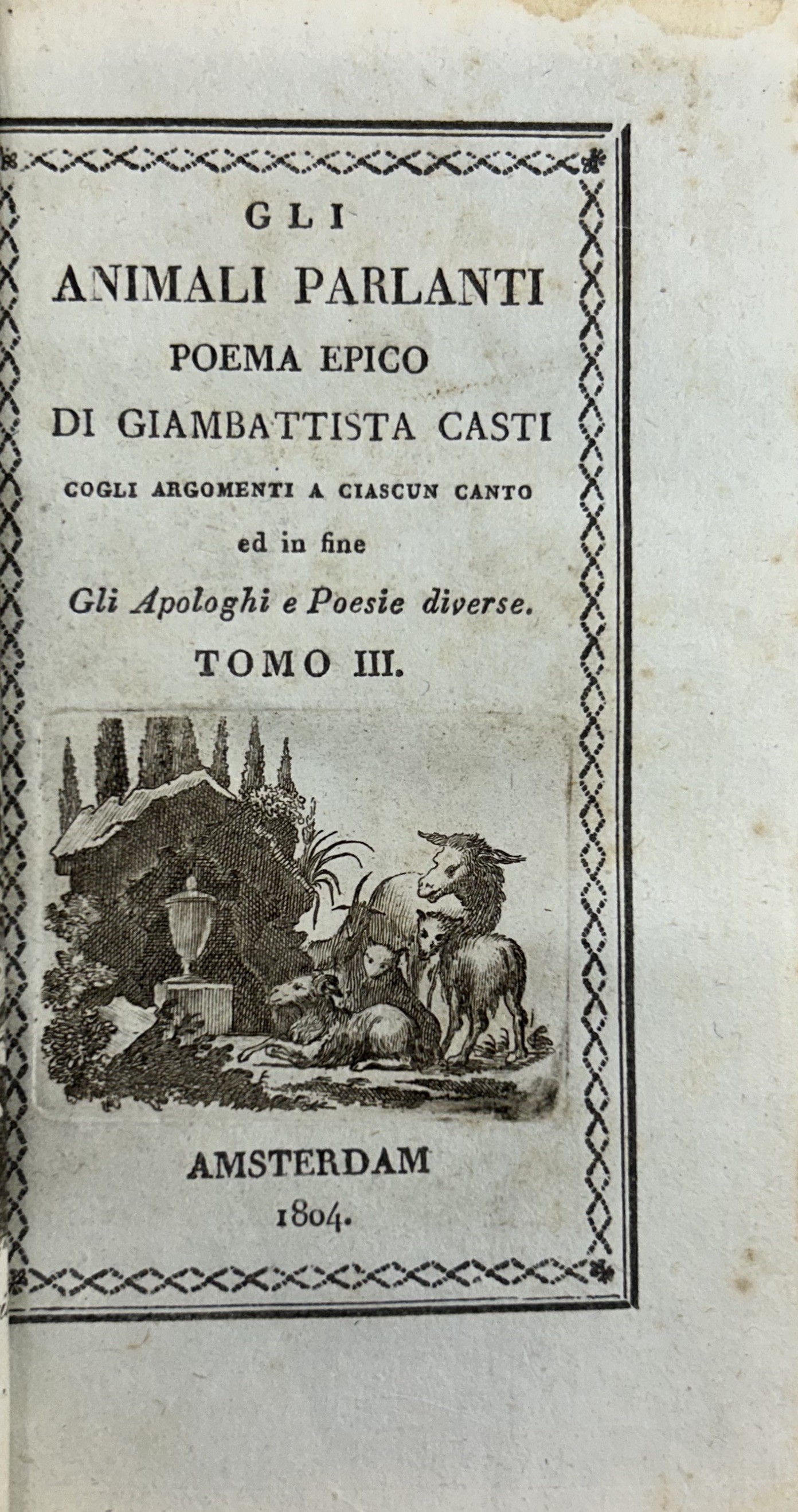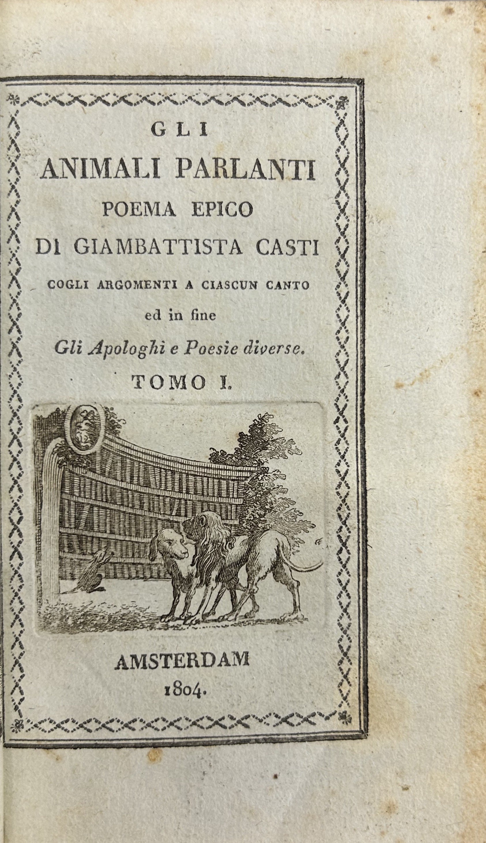 Gli animali parlanti. Poema epico cogli argomenti a ciascun canto ed in fine gli Apologhi e Poesie diverse