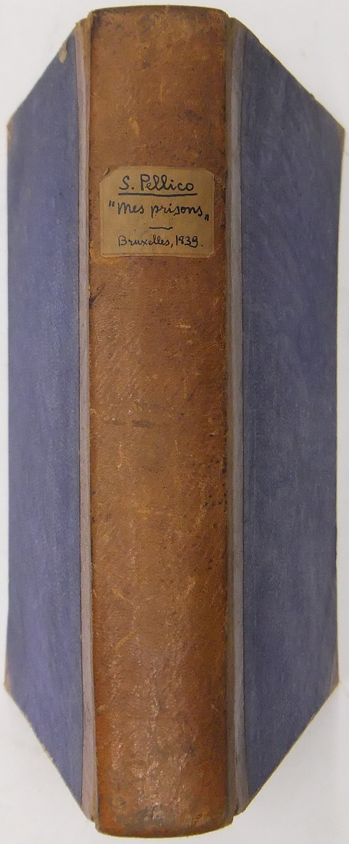 Bel frontespizio con cornice incisa illustrante le varie fasi della prigionia di Pellico. Tavola al controfrontespizio raffigurante l’Autore in catene con in mano un libro.