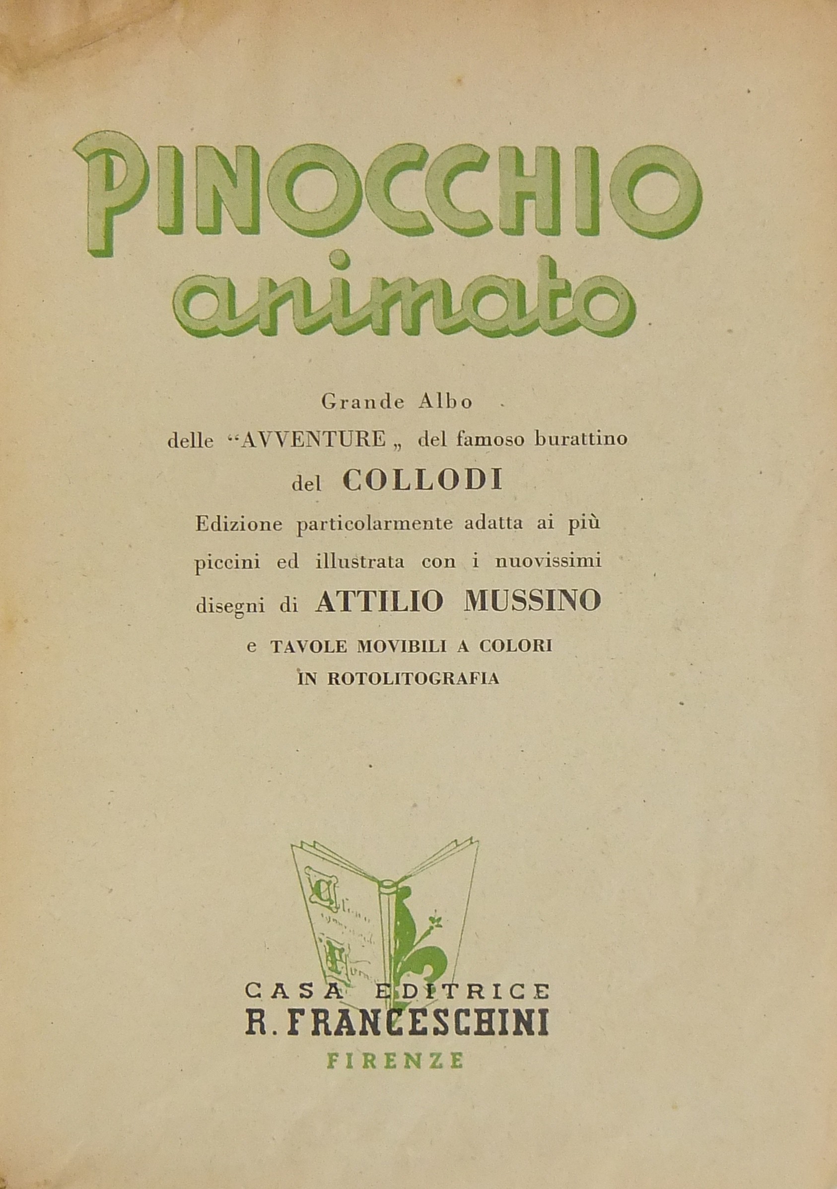 Pinocchio animato. Grande albo delle "Avventure" del famoso burattino del Collodi. Edizione particolarmente adatta ai più piccini ed illustrata con i nuovissimi disegni di Attilio Mussino e tavole movibili a colori in rotolitografia