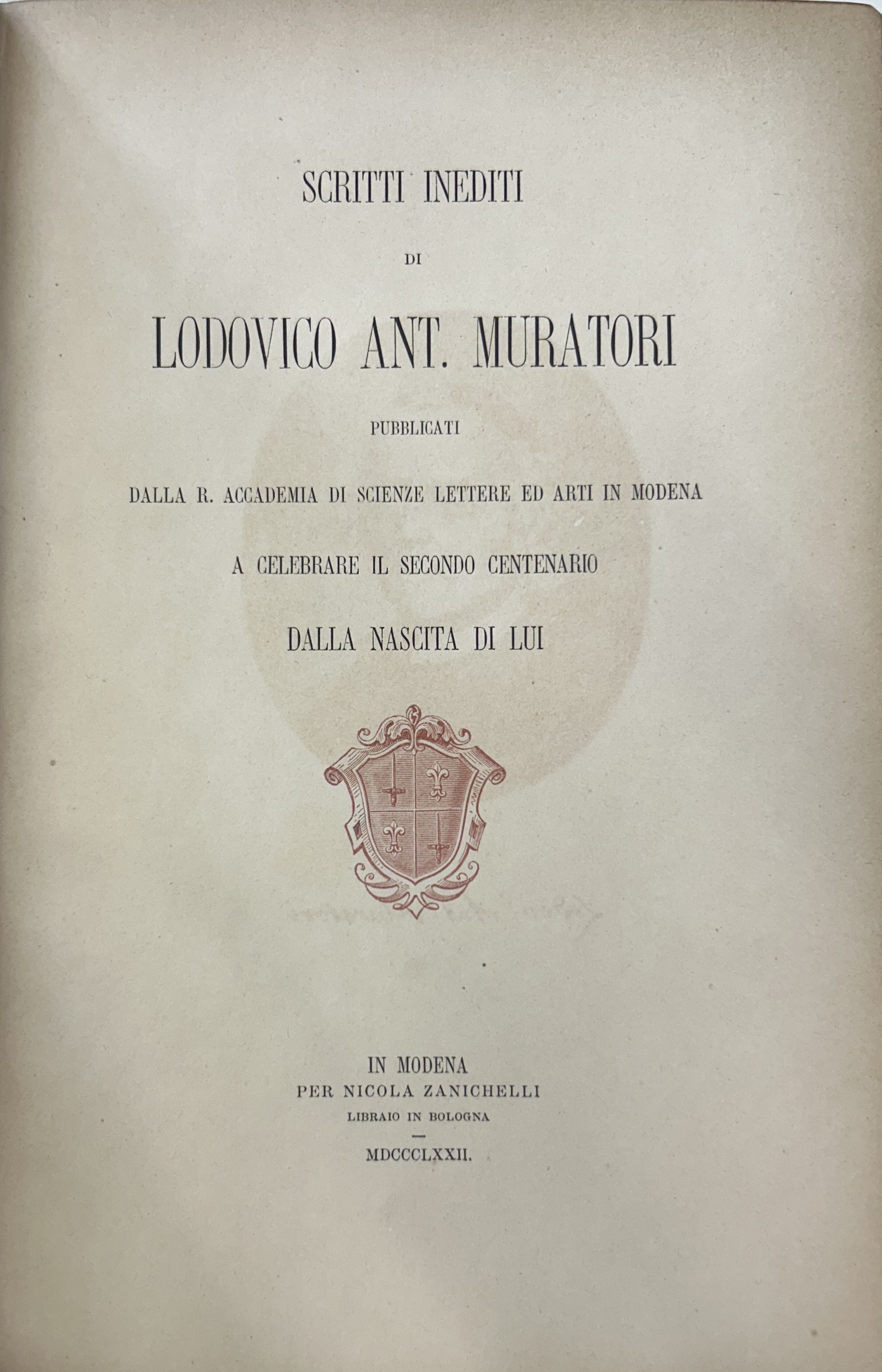 Scritti inediti di Lodovico Ant. Muratori pubblicati dalla R. Accademia di Scienze Lettere ed Arti in Modena a celebrare il secondo centenario dalla nascita di lui