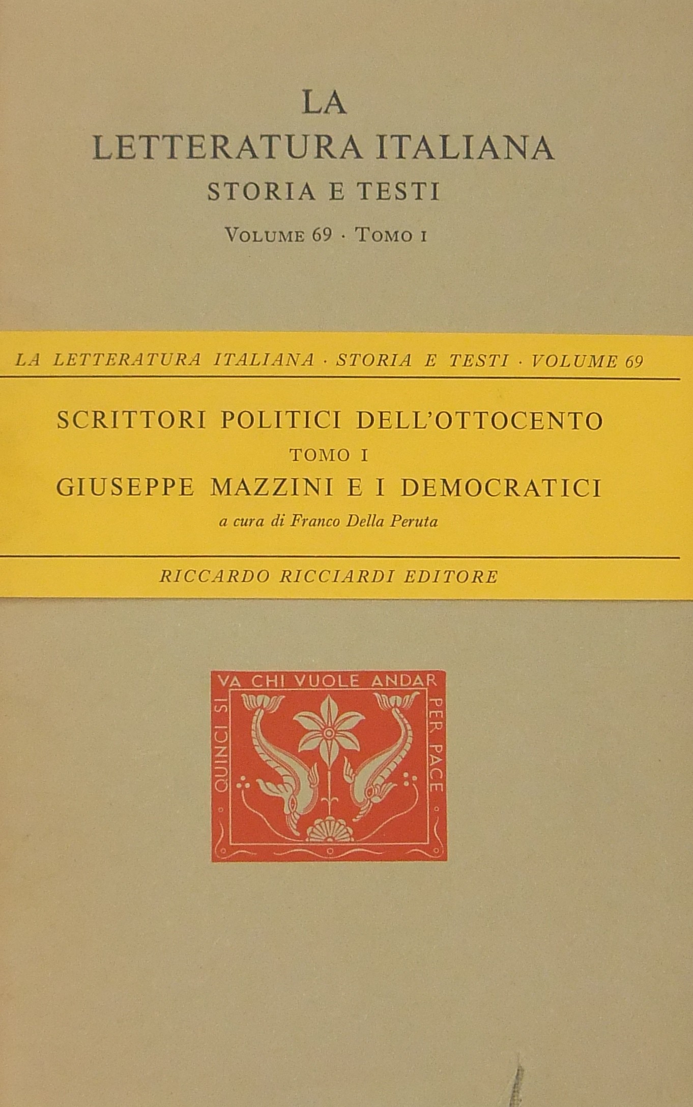 Scrittori politici dell'ottocento. Tomo I - Giuseppe Mazzini e i democratici. A cura di Franco della Peruta