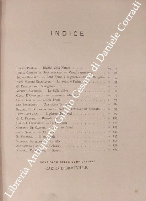 Testi di: Benvenuti, Bernardi, Capranica, Casati, Codemo di Gerstenbrand, D'Ormeville, De Castro, Fortis, Gualdo, Mander-Cecchetti, Paglia, Patuzzi, Regaldi, Santorio, Valbrini