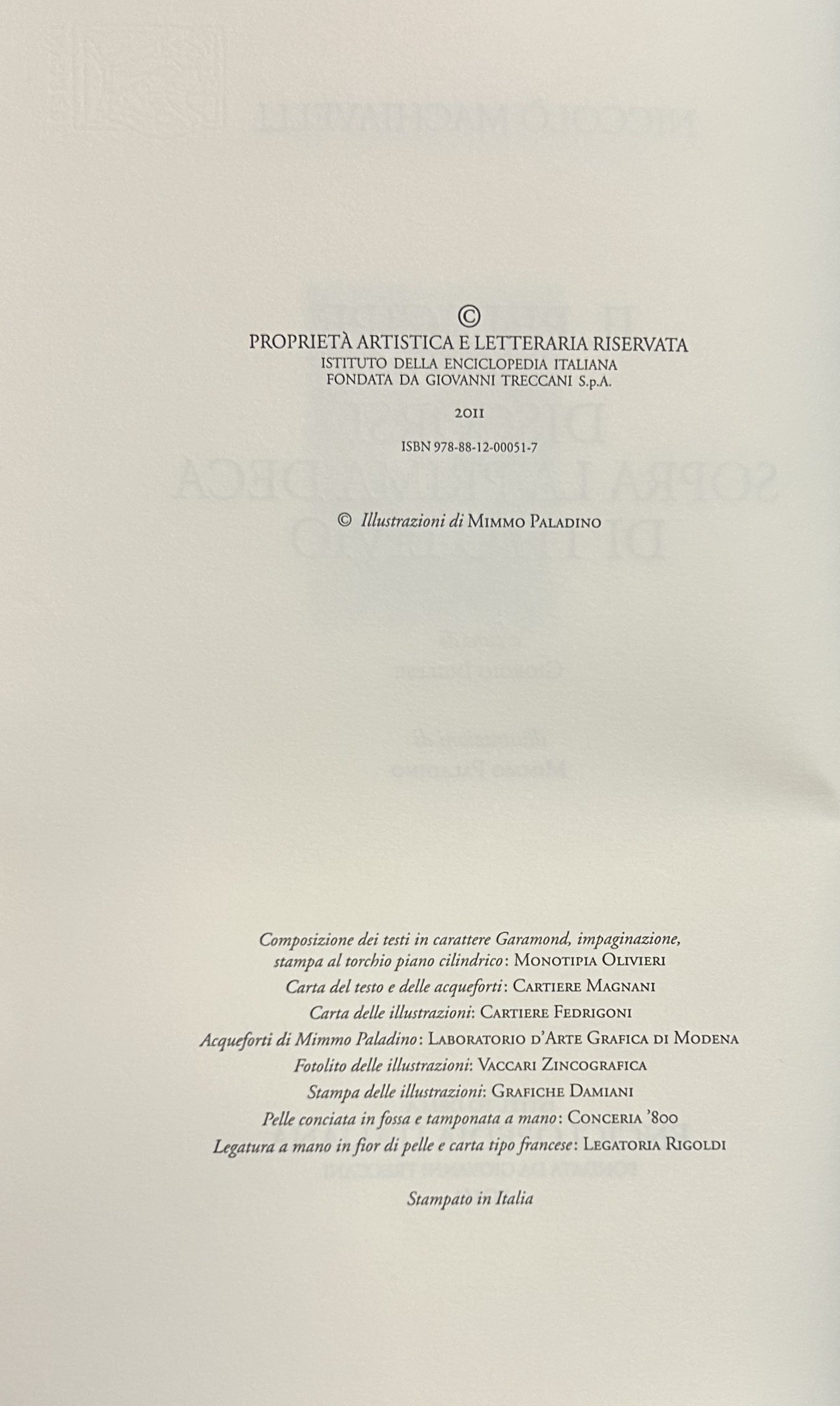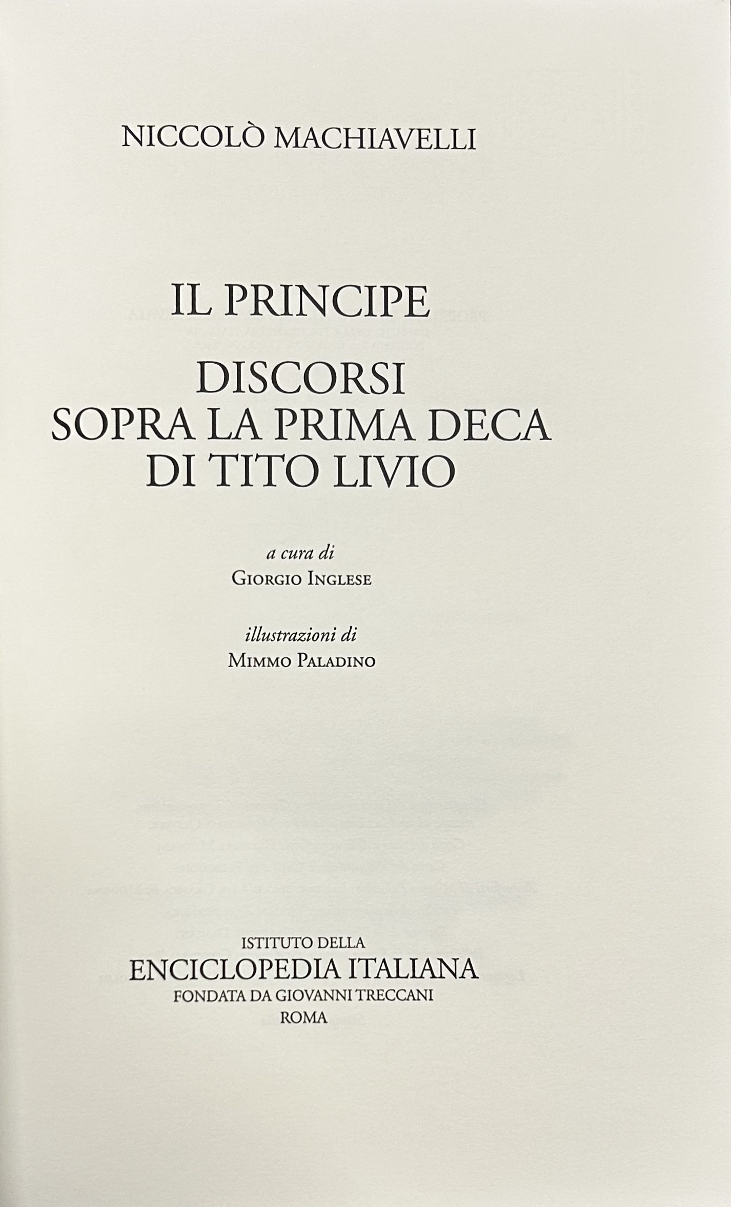 Il Principe; Discorsi sopra la prima deca di Tito Livio. A cura di Giorgio Inglese. Illustrazioni di Mimmo Paladino