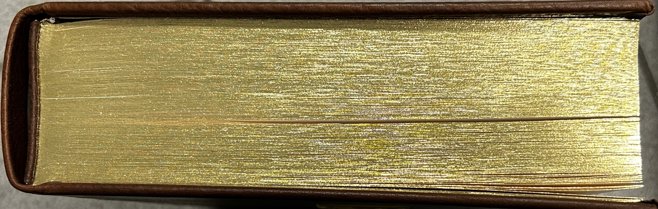 Pregiata edizione con elegante copertina in pelle editoriale, stemma decorato oro al piatto anteriore e taglio superiore in oro. Con tavole a colori. Stampato al torchio piano cilindrico e rilegato a mano in pelle
