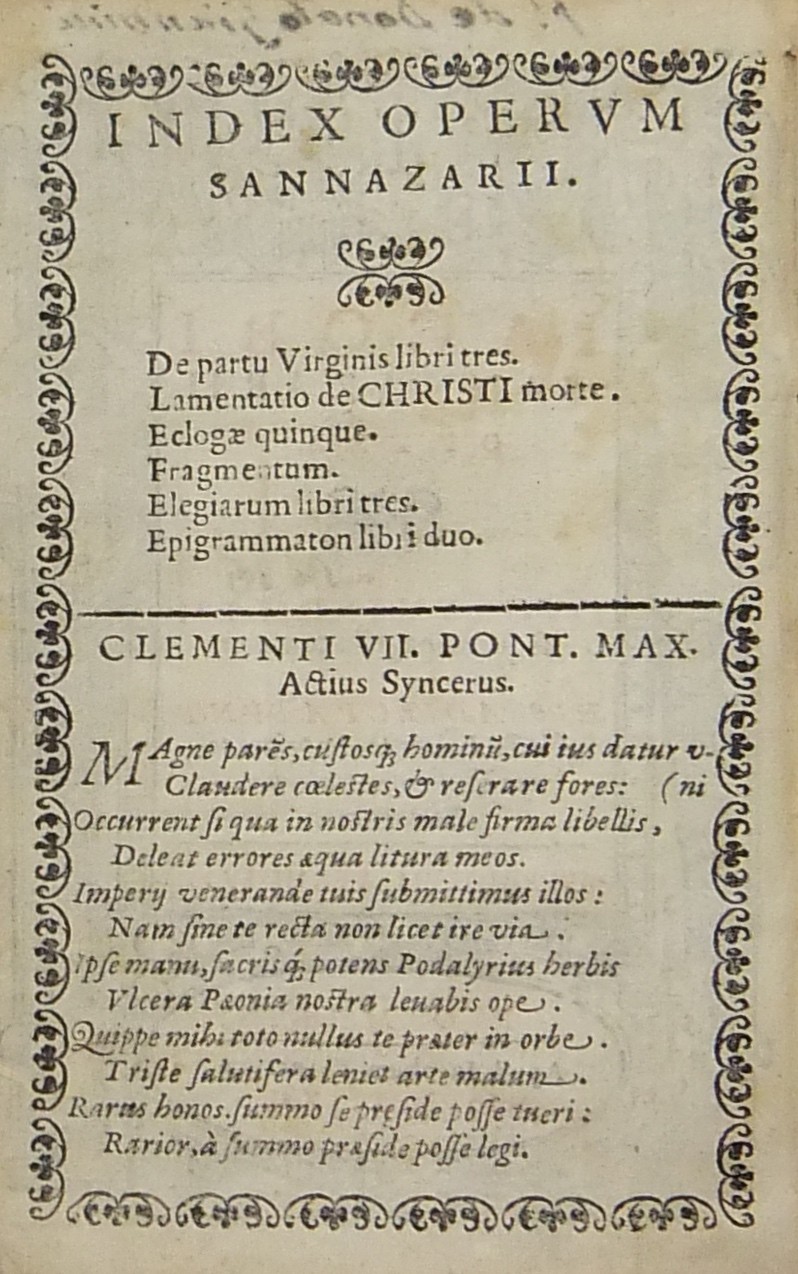 Iacobi Sannazarii, Opera. Quorum Indicem sequens pagella continet
