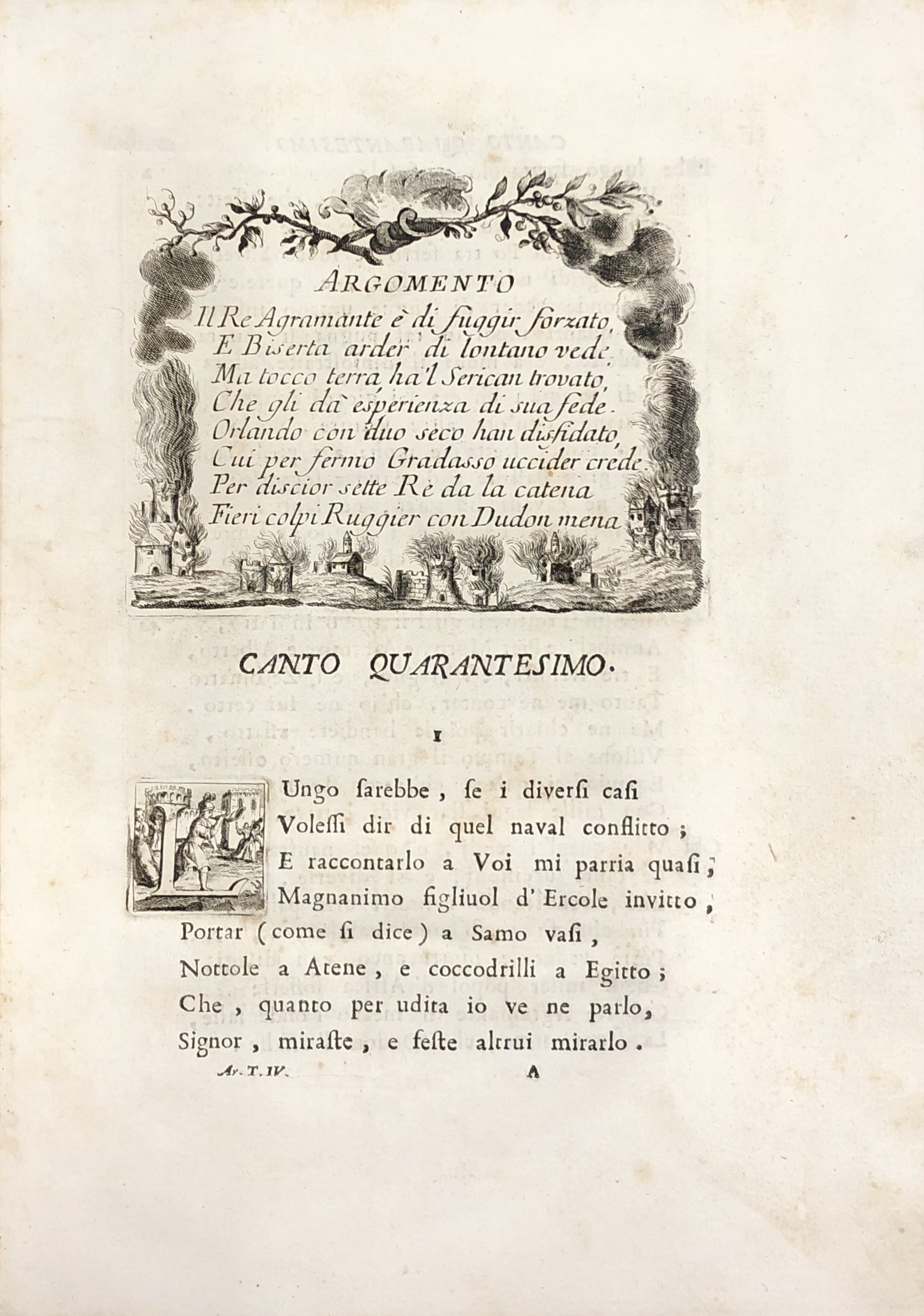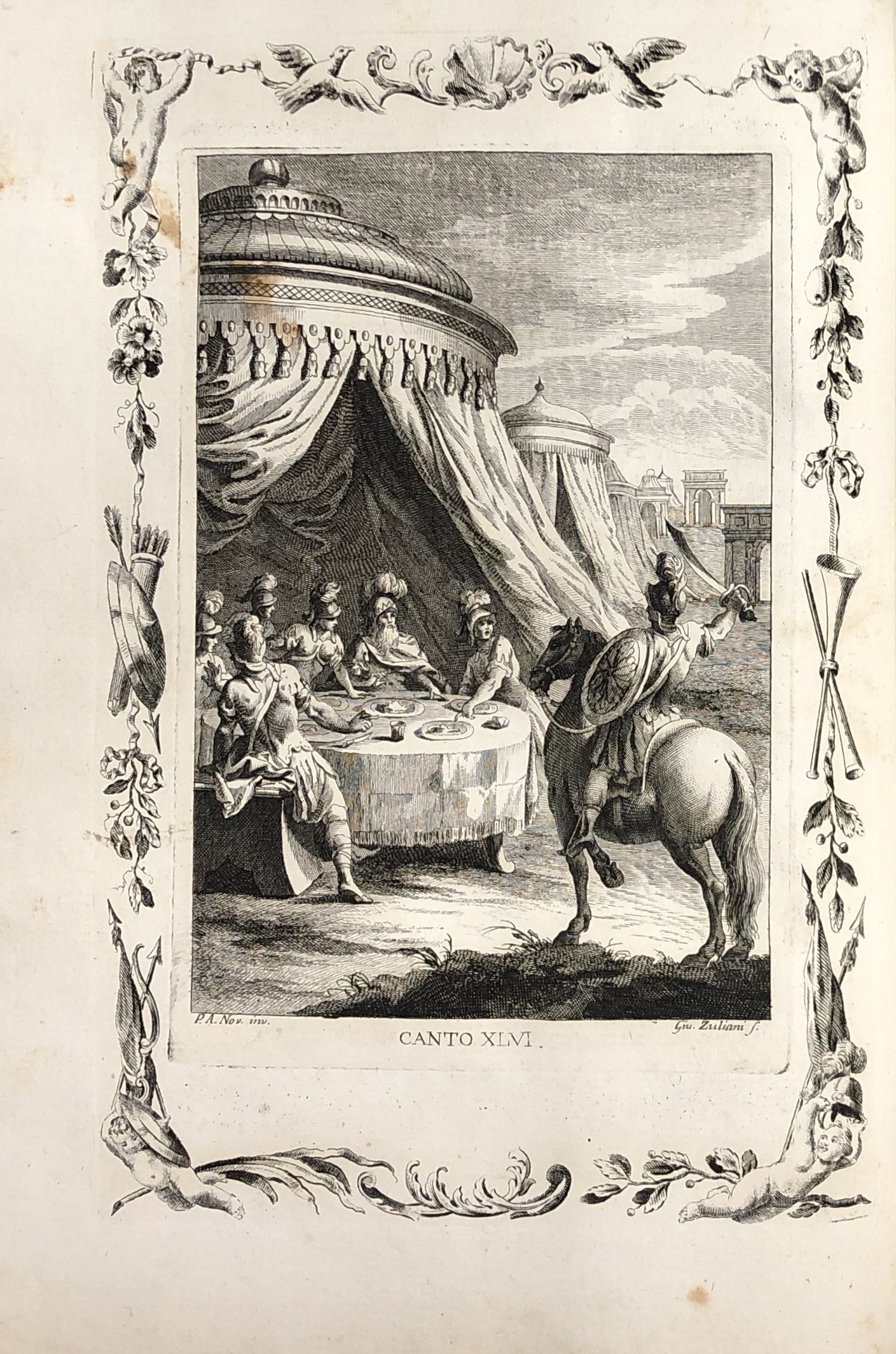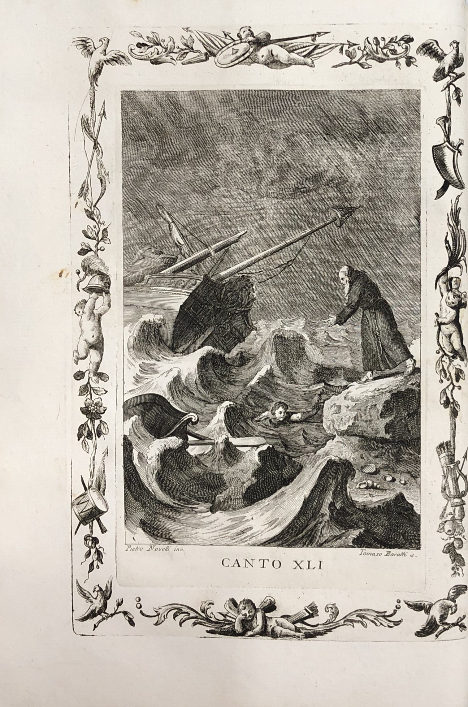 Opera considerata uno dei capolavori dell'editoria veneziana del '700. Quattro frontespizi calcografici, 62 tavole totali a piena pagina (tra le quali: il ritratto dell'Ariosto inciso da Giuseppe Daniotto, la casa, il sepolcro, la sedia, il calamaio, il facsimile della sua scrittura), 36 incisioni di piccole dimensioni, 51 quadranti con testo inciso a inizio di ogni canto (46 canti + 5 rivisti e ricorretti), 20 testatine e finalini incisi. Tra gli incisori: Giuliano Zuliani, Tommaso Baratti, Ferdinando Fambrini, Giacomo Malosso e altri, tutti su soggetti di Pietro Antonio Novelli.