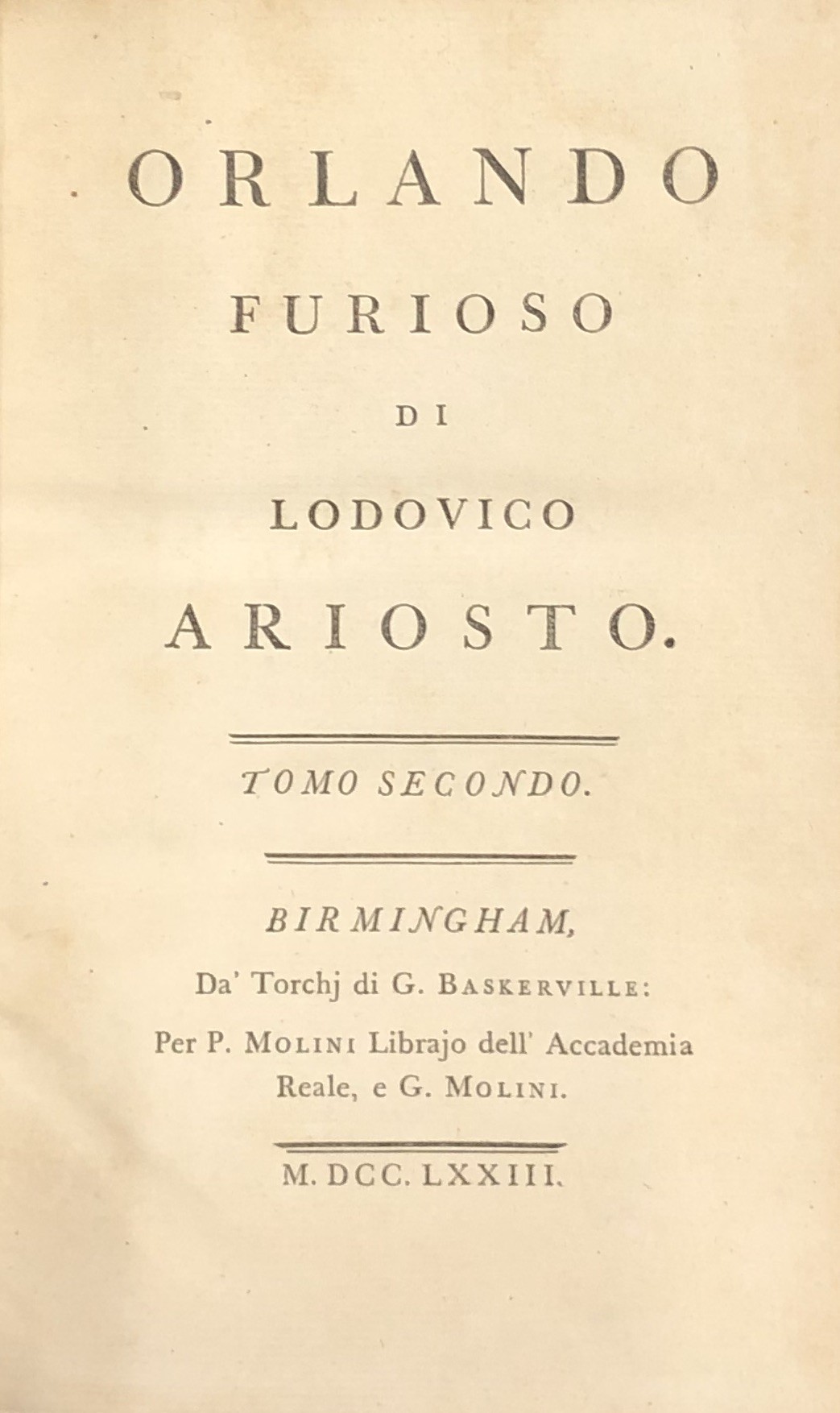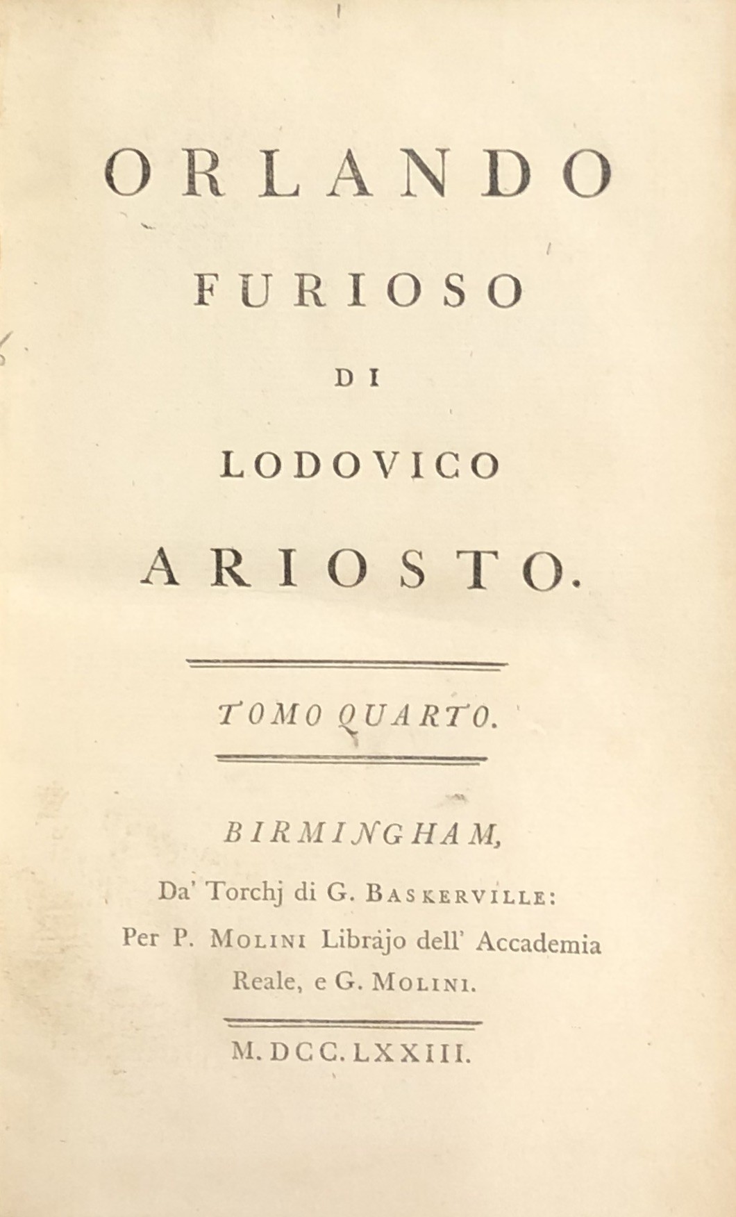 Editore: Da' Torchj di G. Baskerville: Per P. Molini Librajo dell'Accademia Reale, e Molini