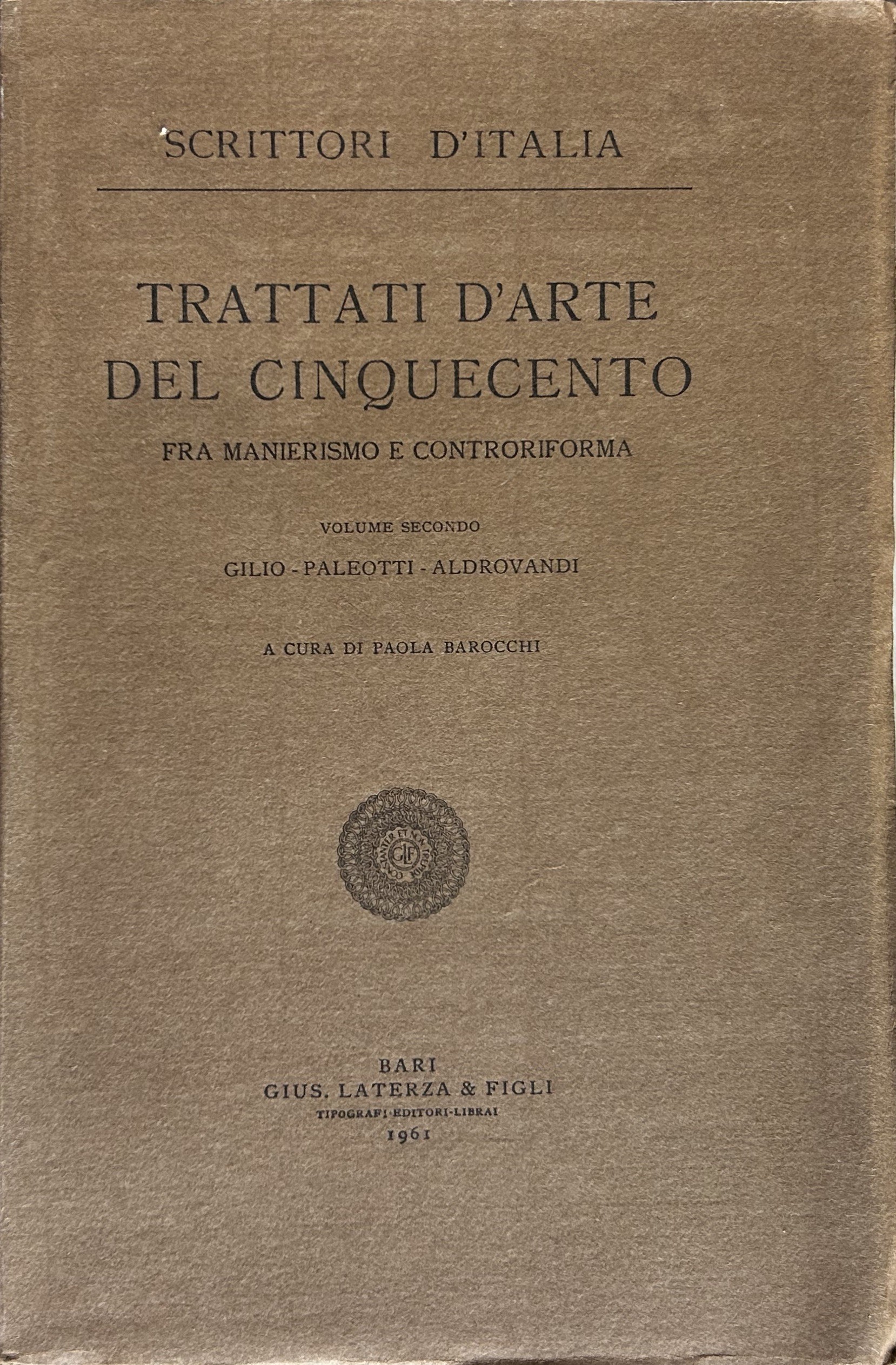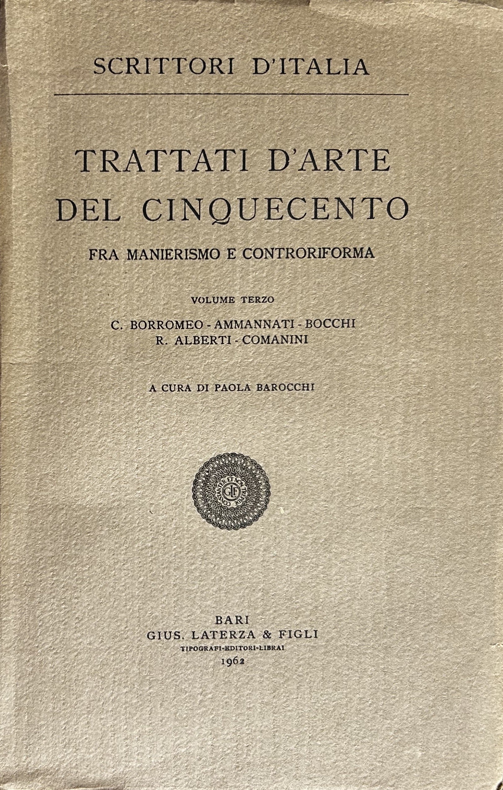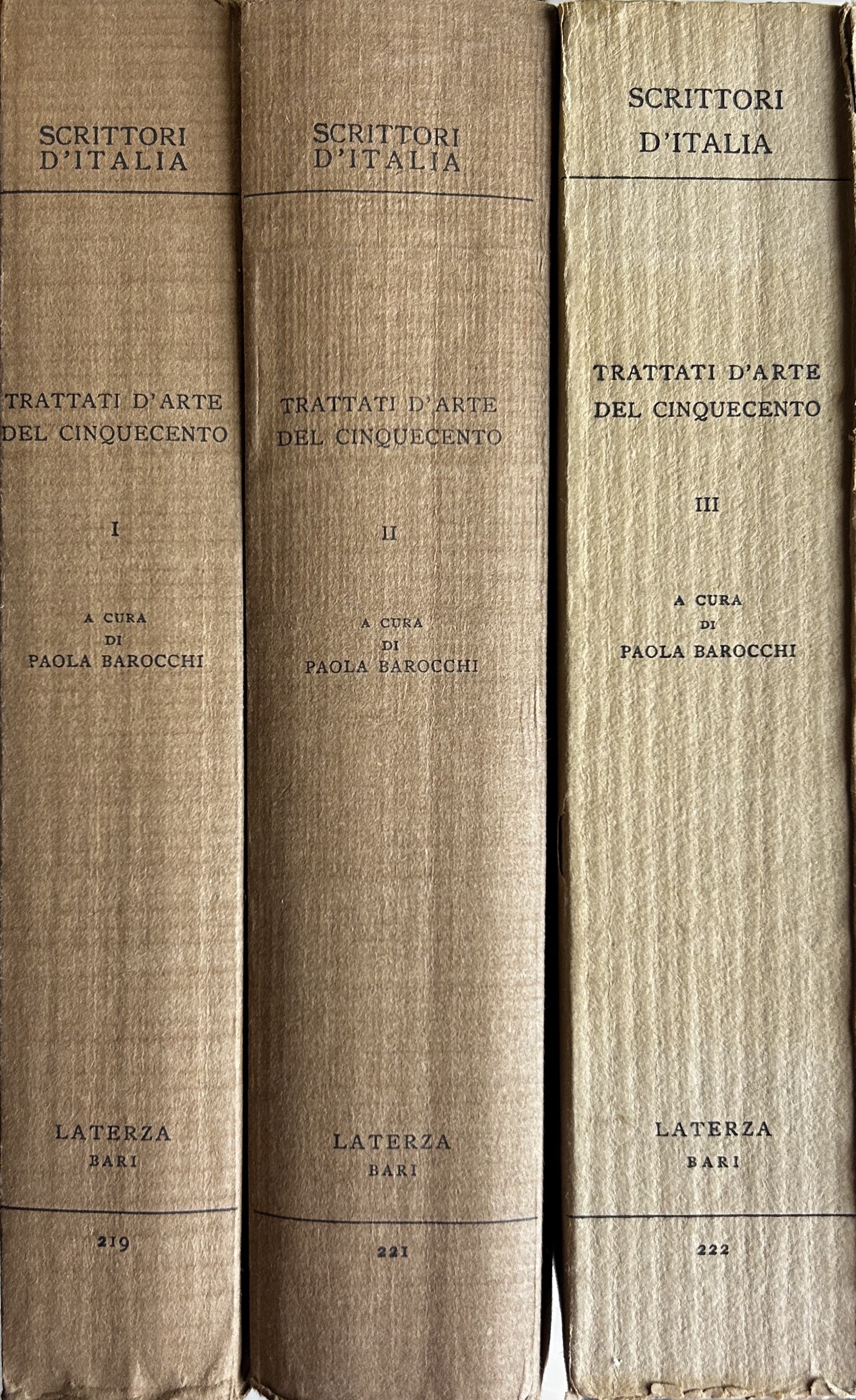 Trattati d'arte del Cinquecento. Fra Manierismo e Controriforma. A cura di Paola Barocchi. Vol. I - Varchi; Pino; Dolce; Danti; Sorte. Vol. II - Gilio; Paleotti; Aldrovandi. Vol. III - C. Borromeo; Ammannati; Bocchi; R. Alberti; Comanini