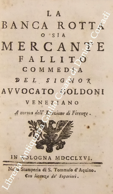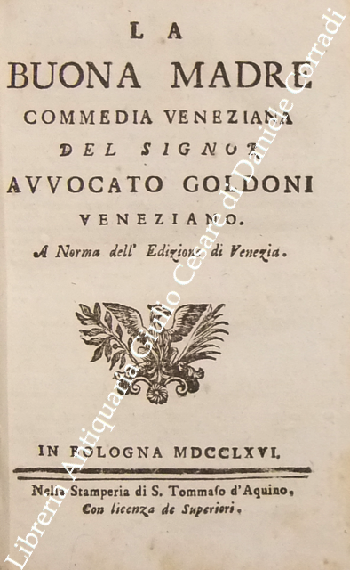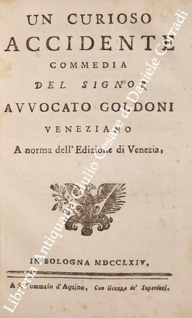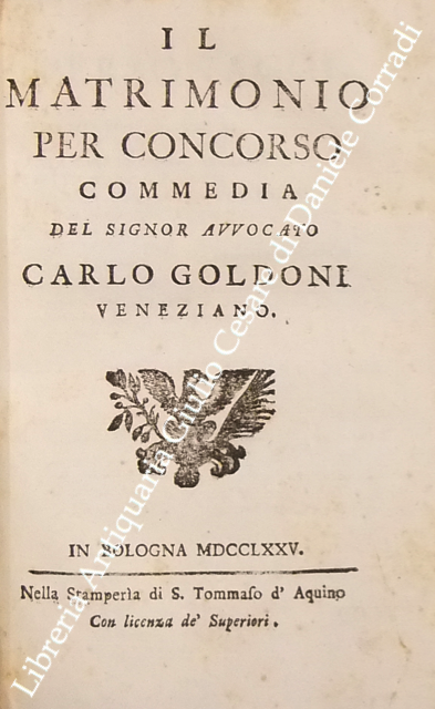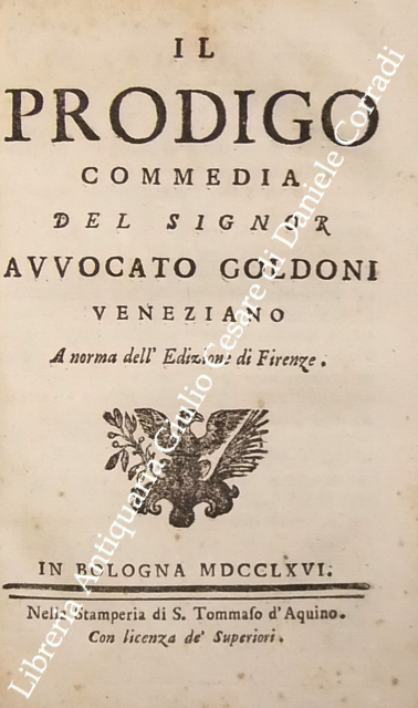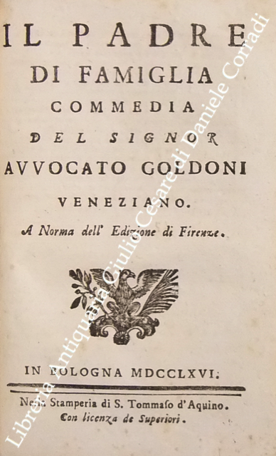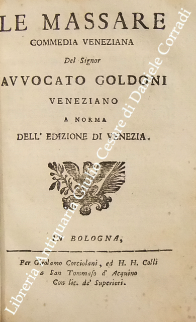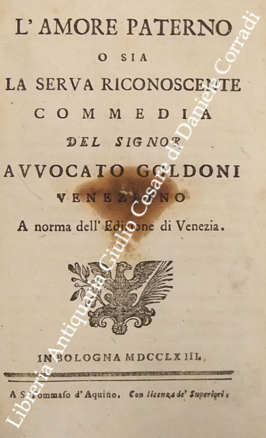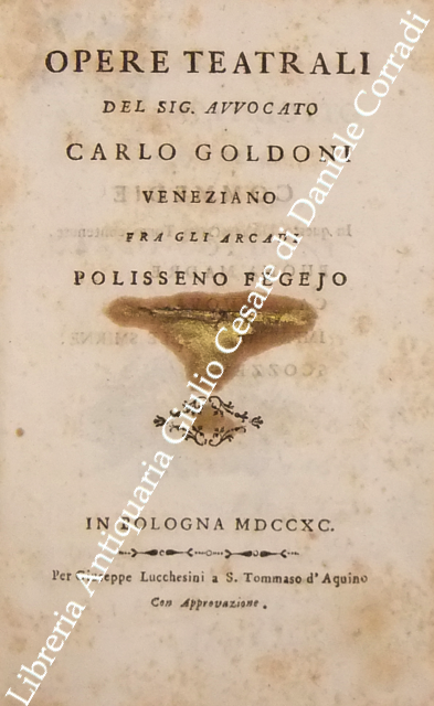 Opere teatrali del sig. avvocato Carlo Goldoni veneziano fra gli Arcadi Polisseno Fegejo. Vol. I - Il Buon Compatriotto, La Buona Madre, La Griselda, Il Matrimonio per Concorso, Il Prodigo, L'Uomo Prudente; Vol. II - L'Amore Paterno o sia la Serva Riconoscente, La Banca Rotta o sia Mercante fallito, Il Cavaliere e la Dama, Un Curioso Accidente, Le Massare, Il Padre di Famiglia