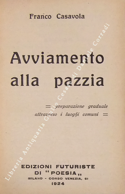 Avviamento alla pazzia. (Avviamento alla pazzzzia). Preparazione graduale attraverso i luoghi comuni. Prefazione di Marinetti