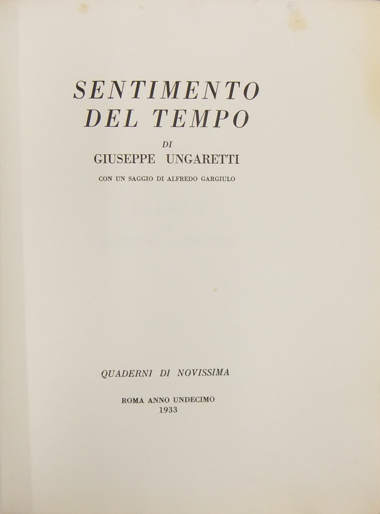 Sentimento del tempo. Con un saggio di Alfredo Gargiulo