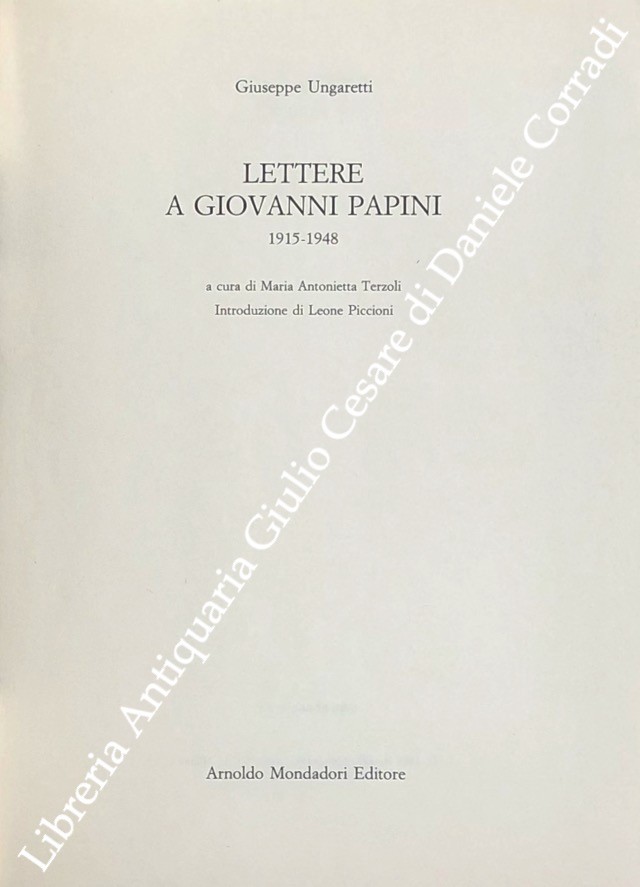 Lettere a Giovanni Papini 1915-1948 a cura di Maria Antonietta terzoli. Introduzione di Leone Piccioni
