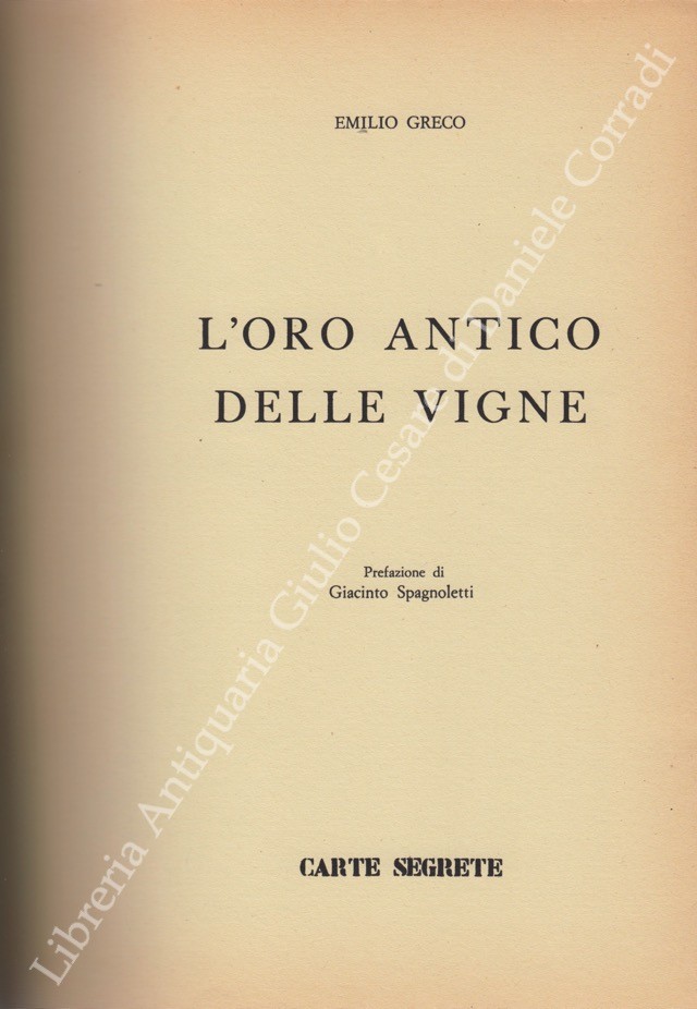 L'oro antico delle vigne. Prefazione di Giacinto Spagnoletti