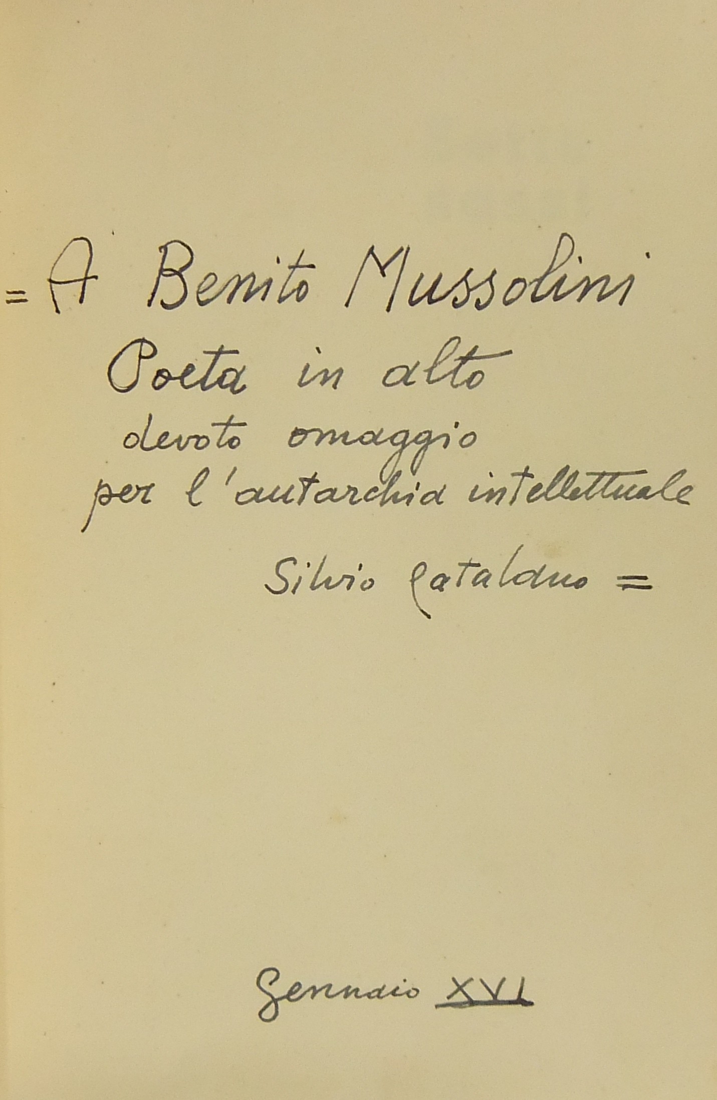 Con dedica dell\'Autore a Benito Mussolini datata gennaio 1938 (XVI)