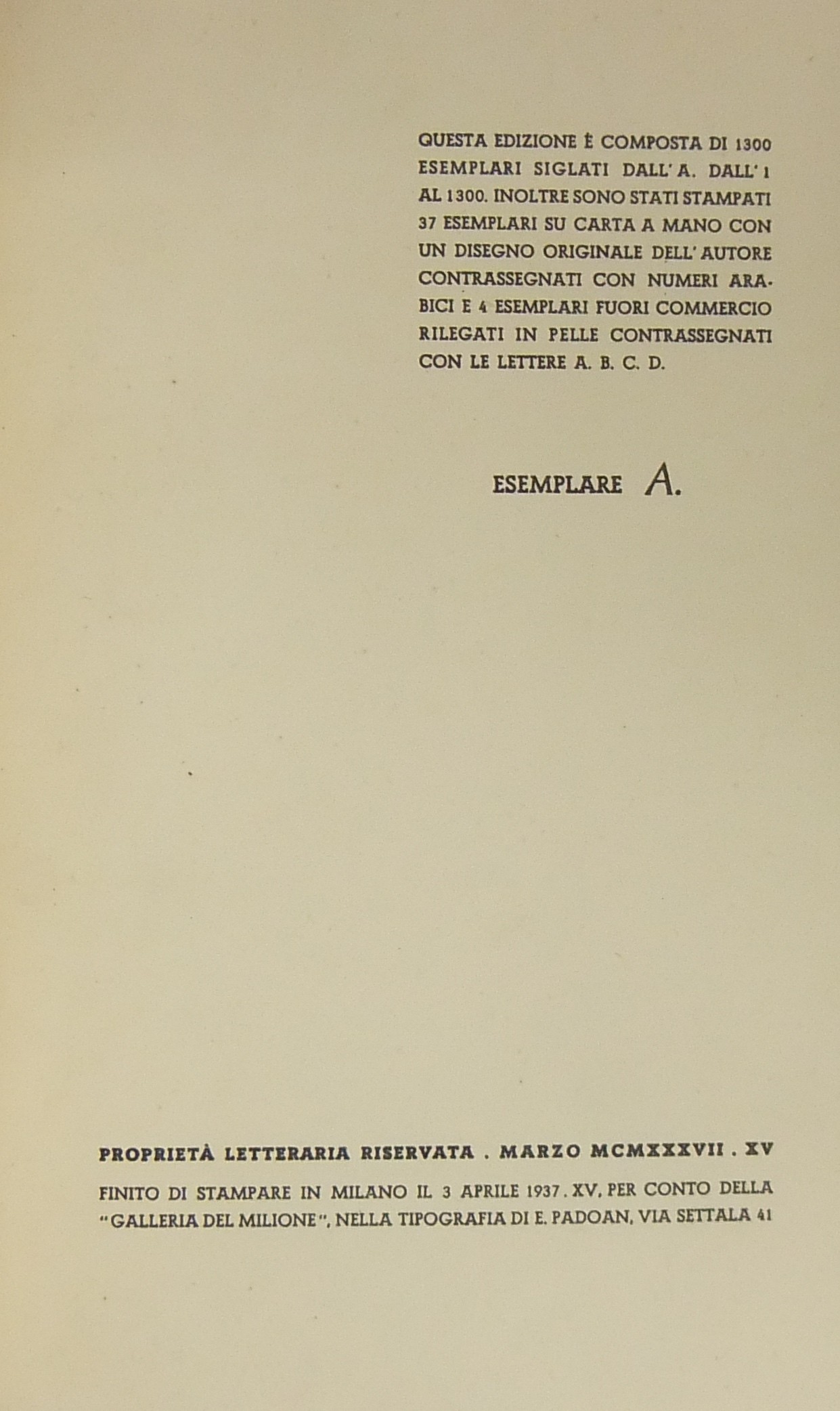 Nostro esemplare A della tiratura di 4 fuori commercio contrassegnati dalle lettere A, B, C, D.