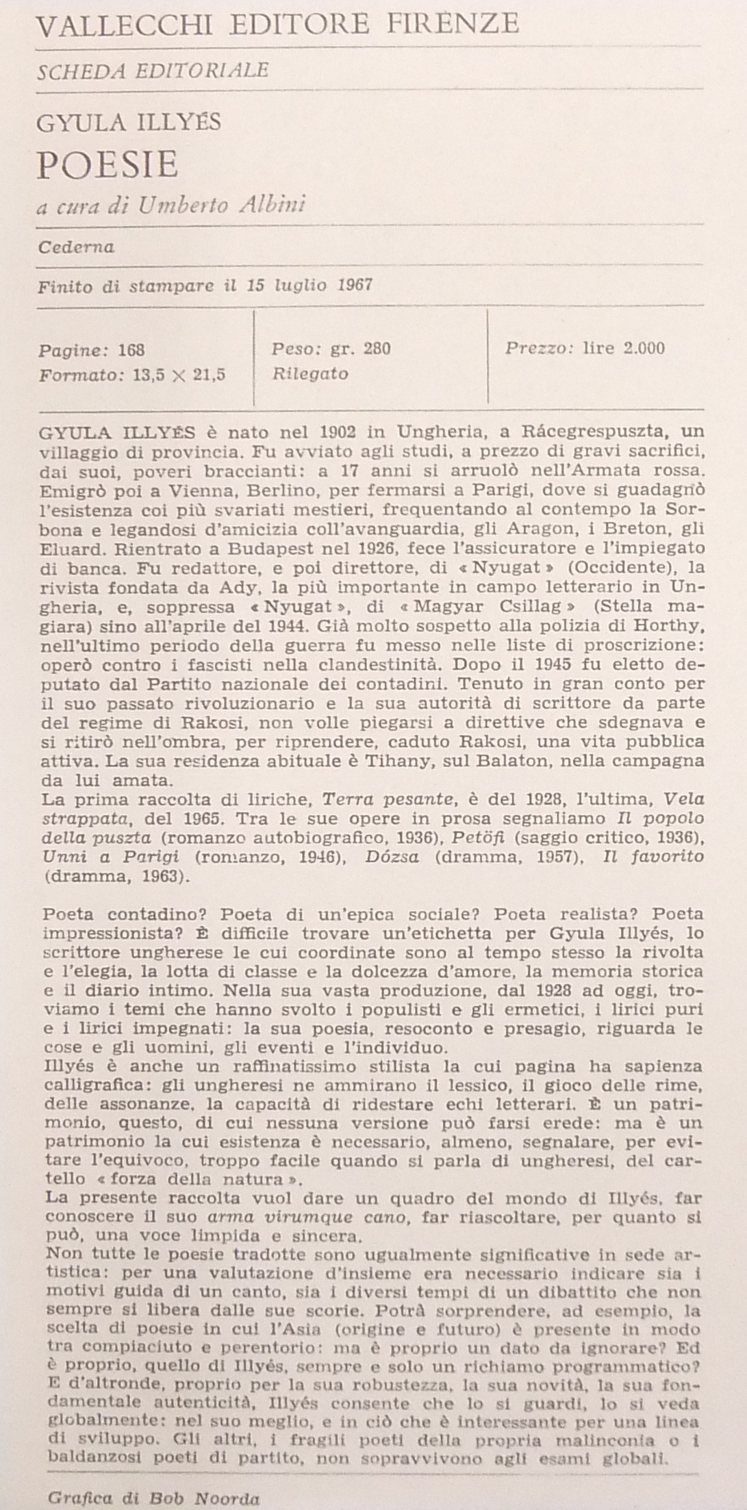 Poesie di Gyula Illyes. A cura di Umberto Albini