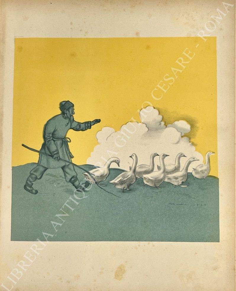 Firma a tampone di M. Tibaldi Chiesa. Risguardi figurati in rosso. Numerose illustrazioni di Vsevolod Niculin