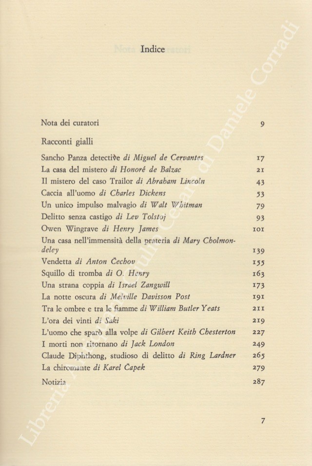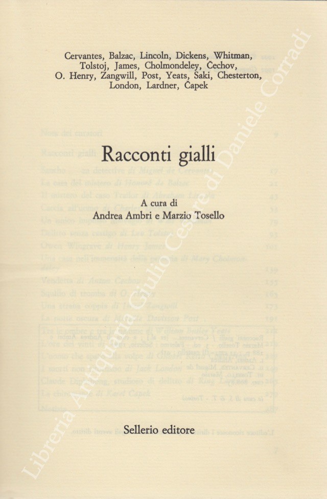 Racconti di: Balzac, Capek, Cechov, Cervantes, Chesterton, Cholmondeley, Dickens, Henry O., James, Lardner, Lincoln, London, Post, Saki, Tolstoj, Whitman, Yeats, Zangwill,