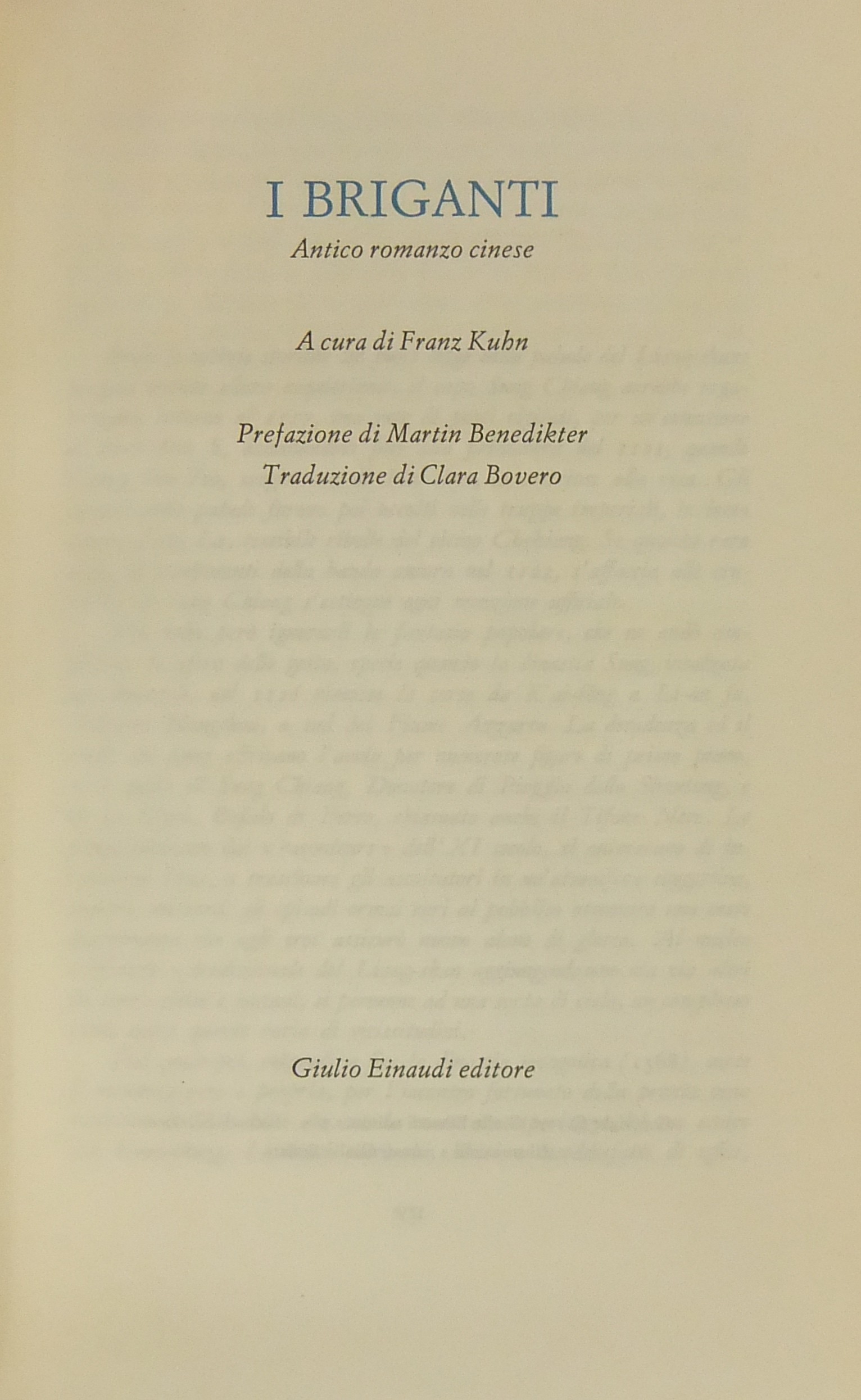 I briganti. Antico romanzo cinese. Prefazione di Martin Benedikter. Traduzione di Clara Bovero