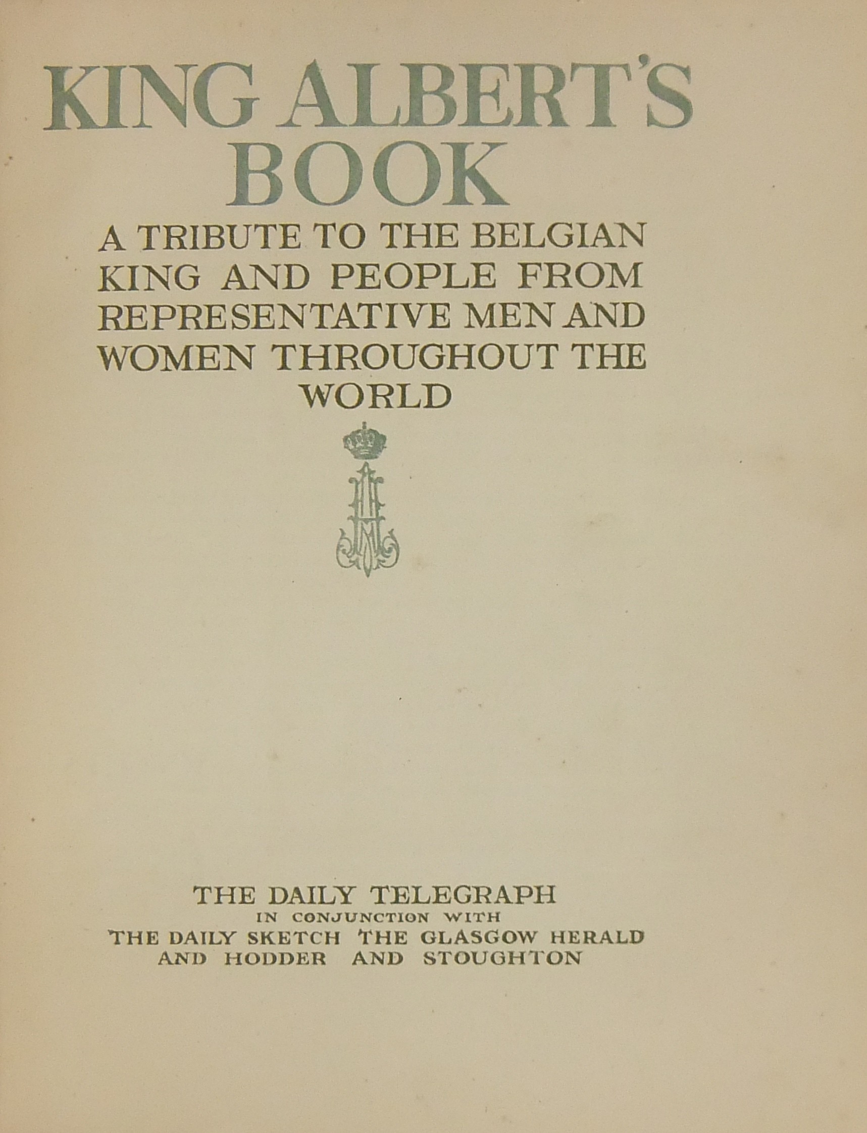 King Albert's book. A tribute to the belgian king and people from representative men and women throughout the world