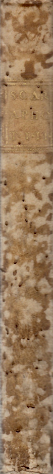 Antichi percorsi di tarlo estinto lungo il margine interno della copertina senza alcun interessamento del testo e al dorso