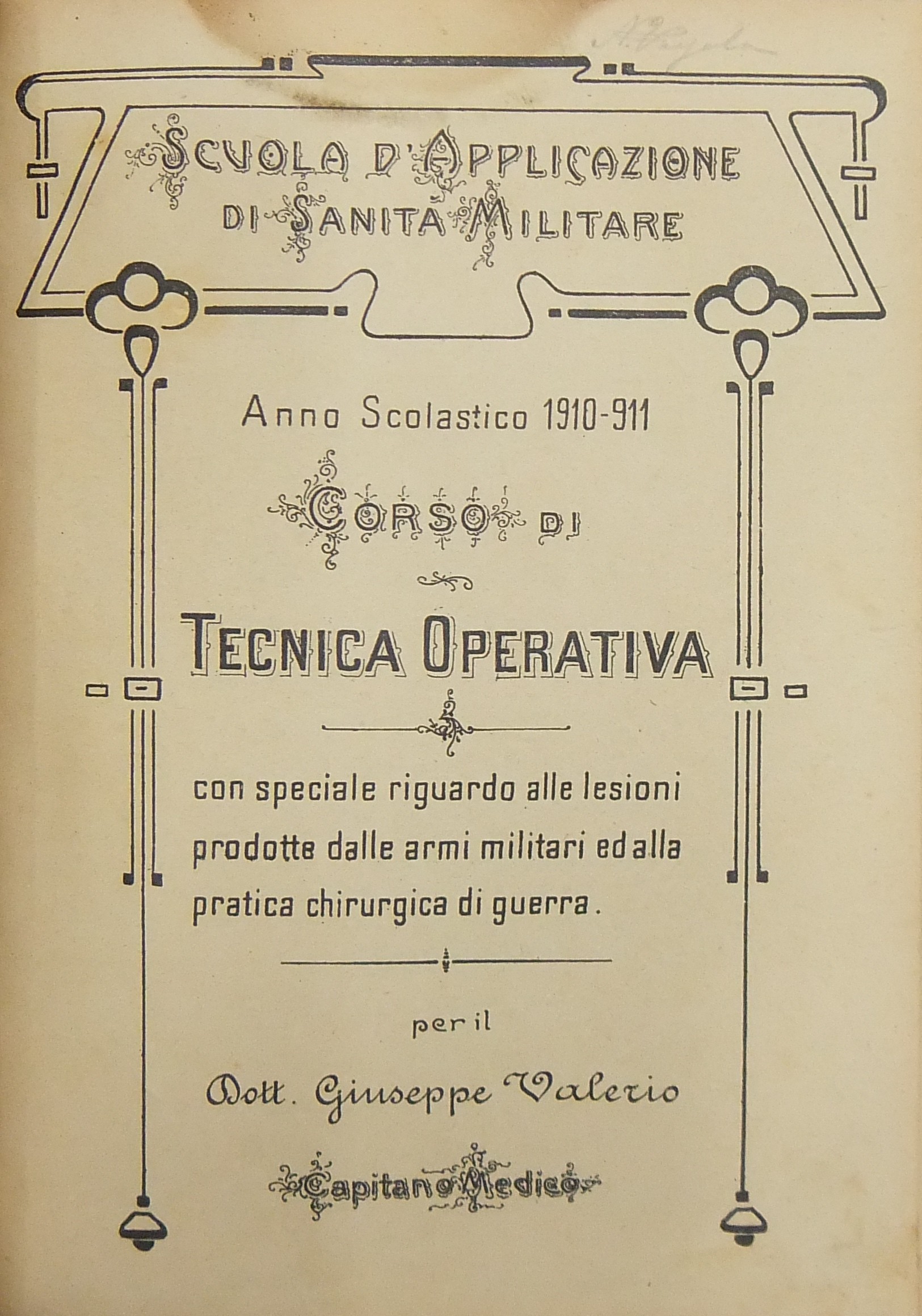 Corso di traumatologia con speciale riguardo alle lesioni prodotte dalle armi militari ed alla pratica chirurgica di guerra. Anno scolastico 1910-1911. UNITO A: Corso di tecnica operativa con speciale riguardo alle lesioni prodotte dalle armi militari ed alla pratica chirurgica di guerra. Anno scolastico 1910-1911