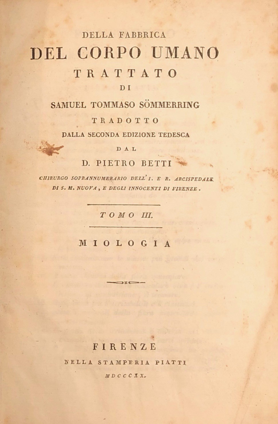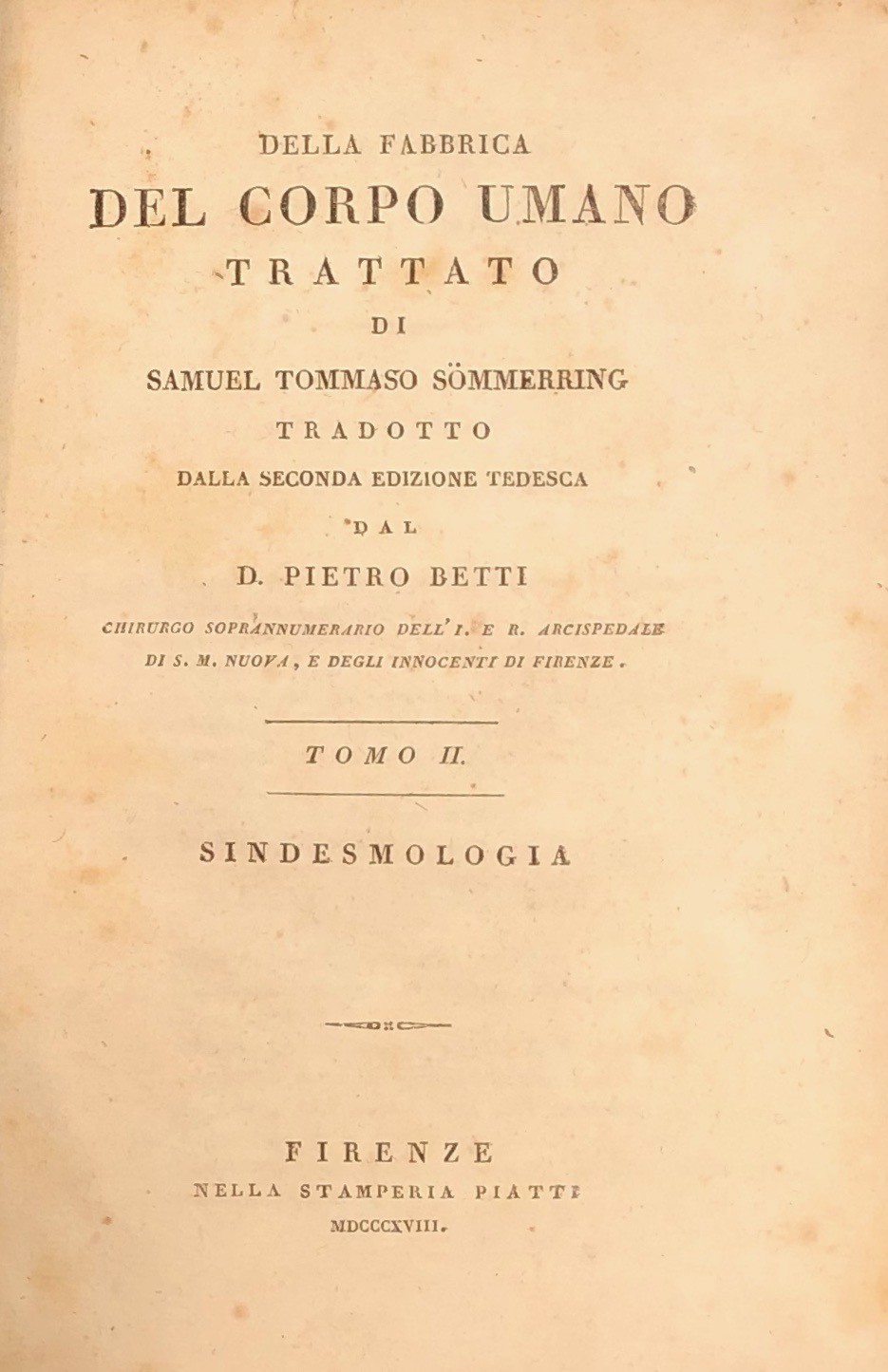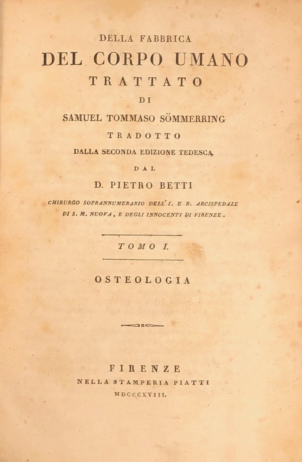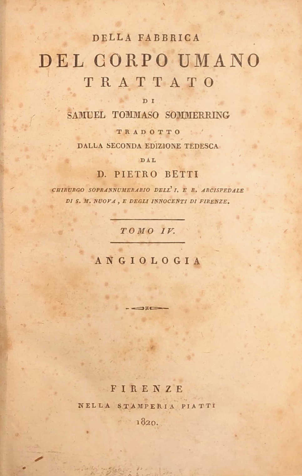 Della fabbrica del corpo umano. Tradotto dalla seconda edizione tedesca dal D. Pietro Betti. Vol. I - Osteologia; Vol. II - Sindesmologia; Vol. III - Miologia; Vol. IV - Angiologia
