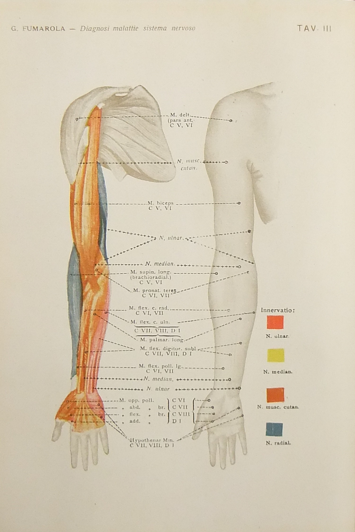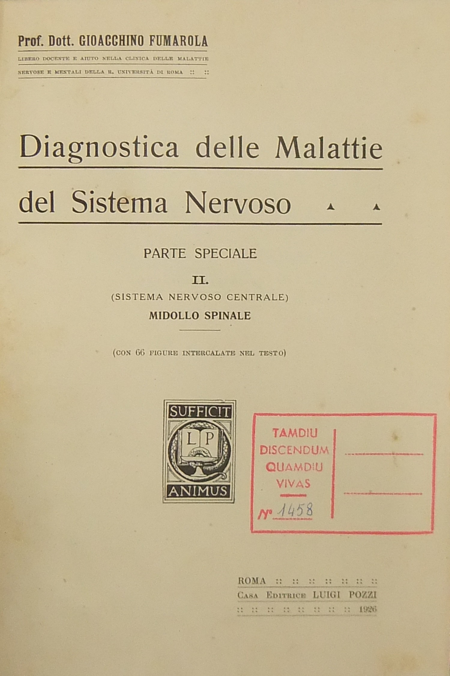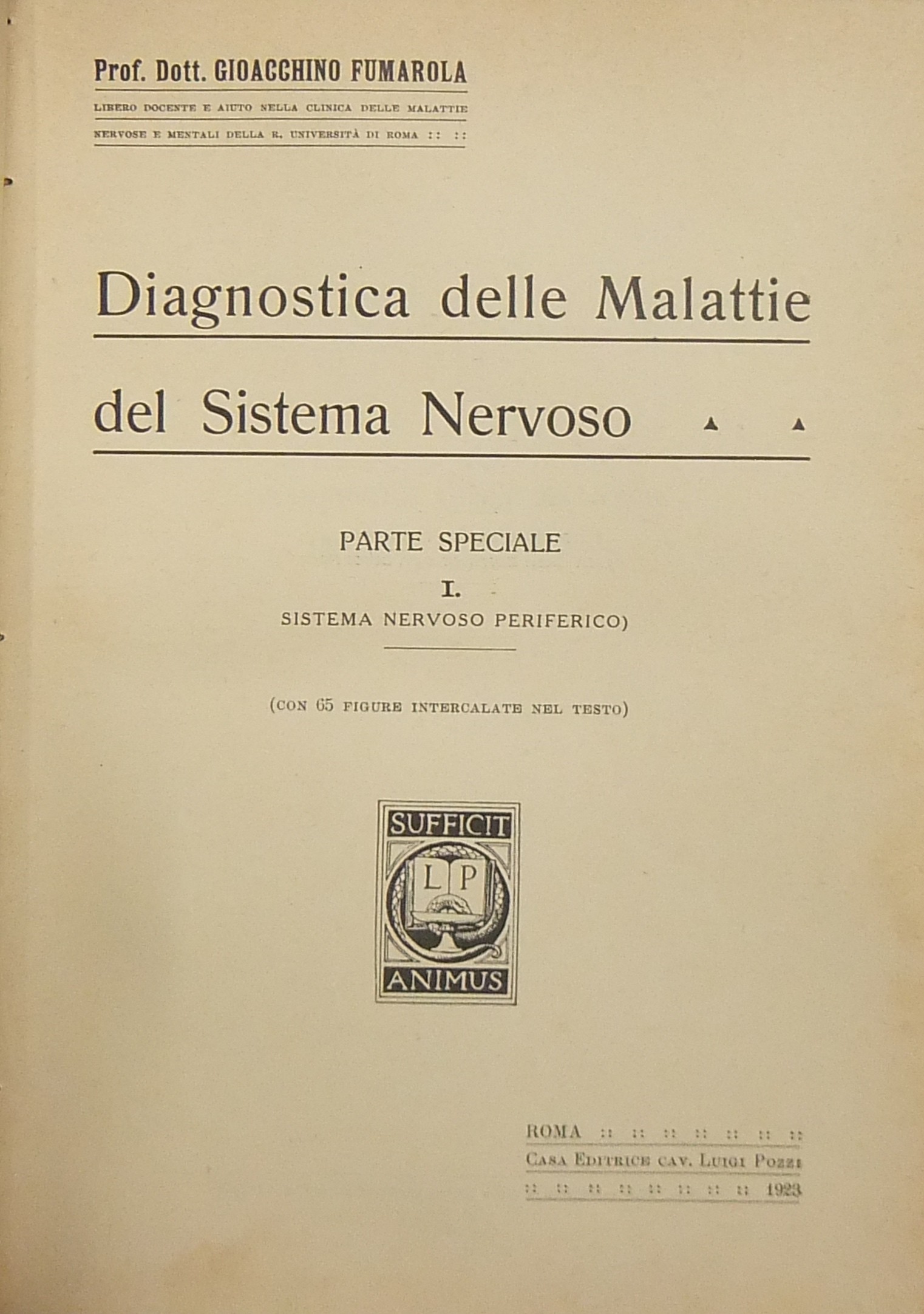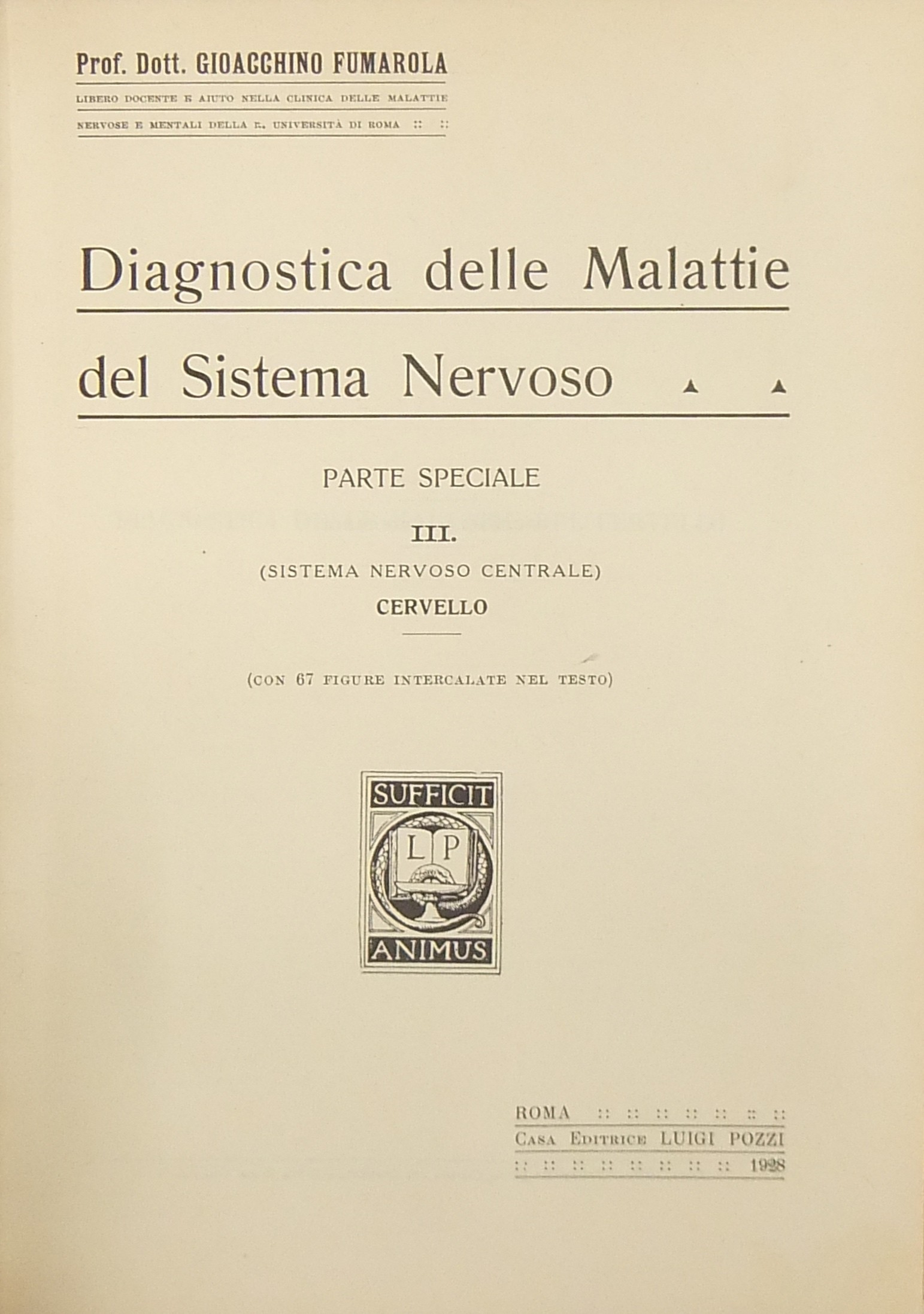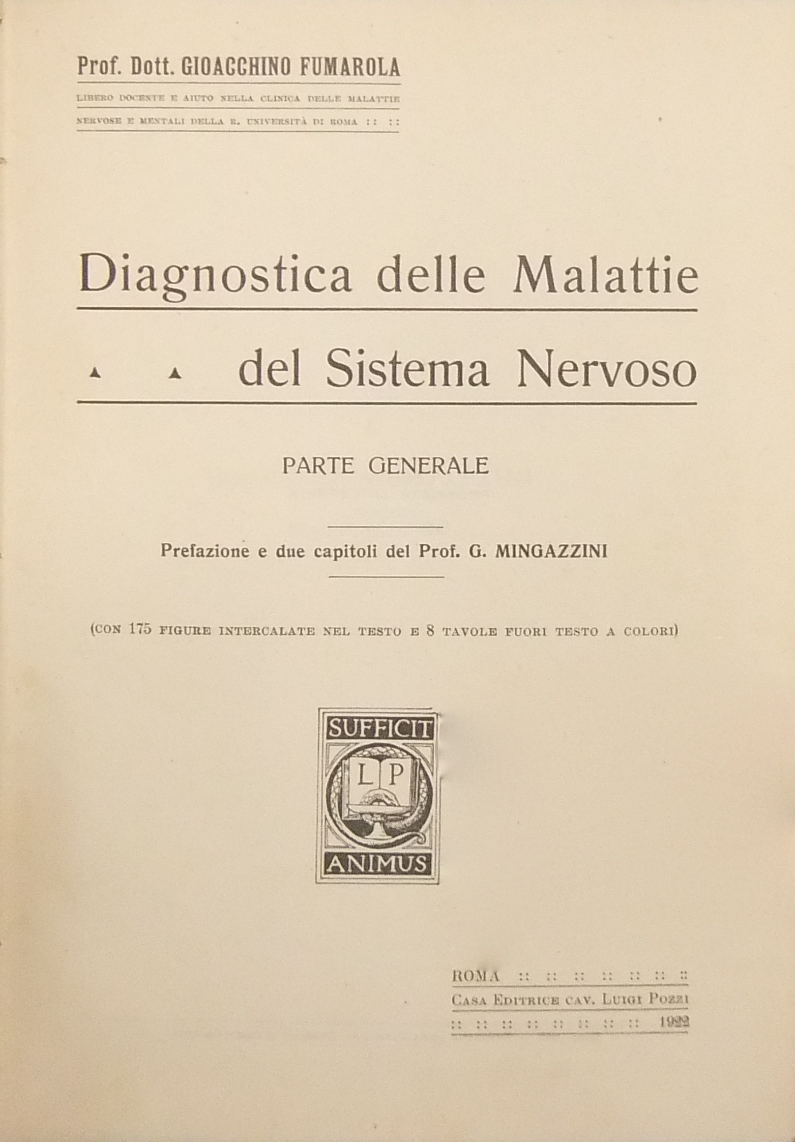 Diagnostica delle malattie del sistema nervoso. Parte generale. Prefazione e due capitoli del Prof. G. Mingazzini. (Con 175 figure intercalate nel testo e 8 tavole fuori testo a colori); Parte speciale, Vol. I - Sistema nervoso periferico (con 65 figure intercalate nel testo); Parte speciale, Vol. II - Sistema nervoso centrale, Midollo spinale (con 66 figure intercalate nel testo); Parte speciale, Vol. III - Sistema nervoso centrale, Cervello (con 67 figure intercalate nel testo)