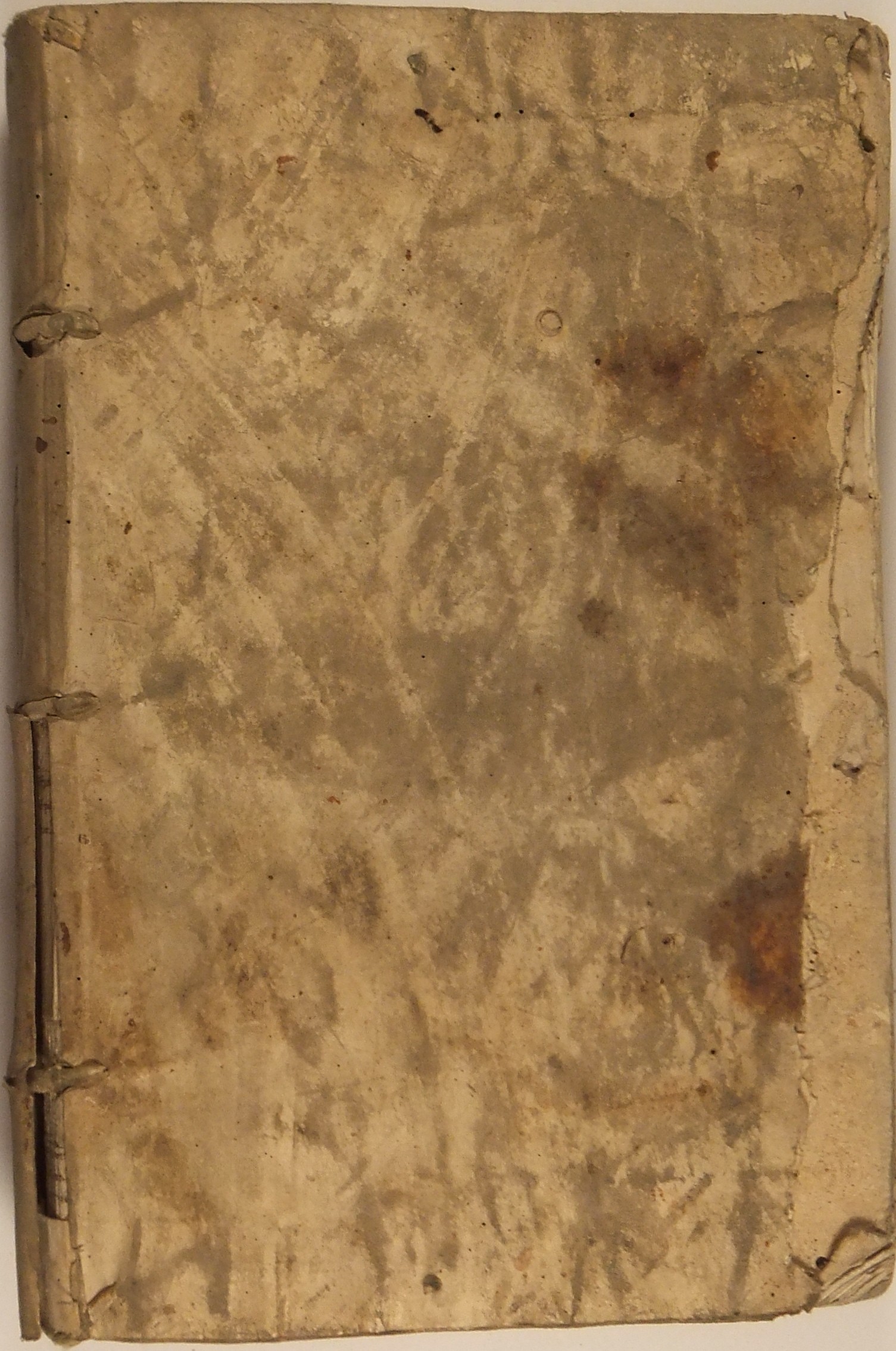 Alone nel margine inferiore, leggere bruniture, perdita di rivestimento al bordo del piatto posteriore, nota bibliografica di antica mano al contropiatto