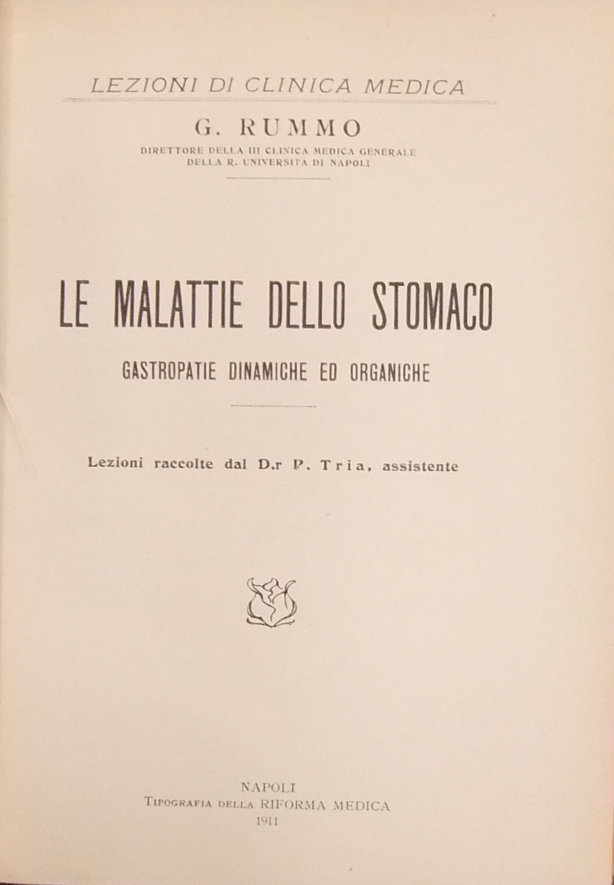 Le malattie dello stomaco. Gastropatie dinamiche ed organiche. Lezioni raccolte dal Dr. P. Tria, assistente