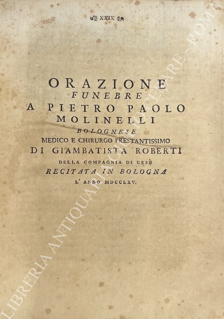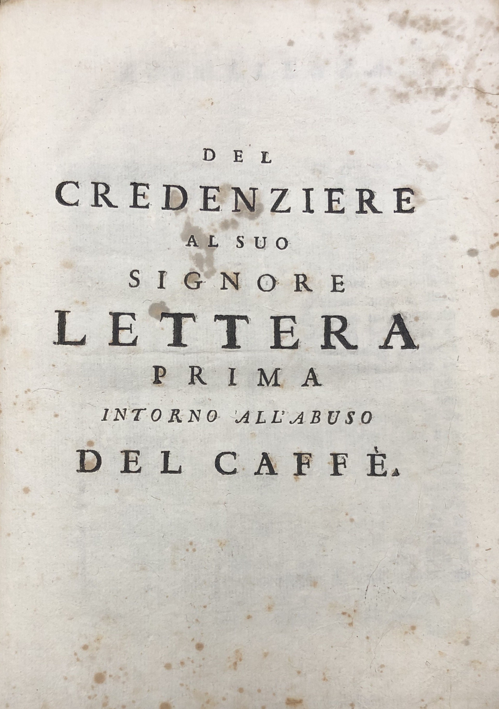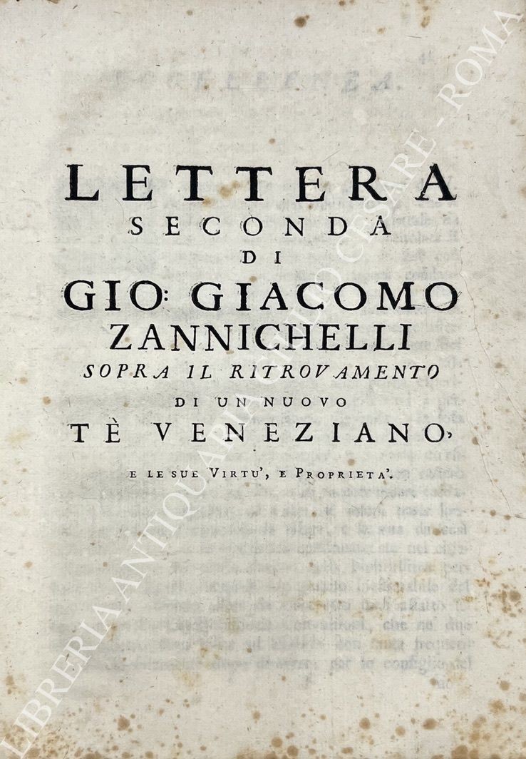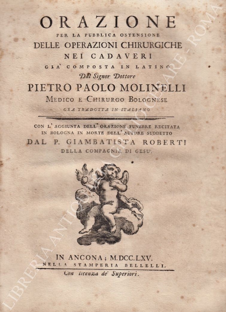 Osservazioni intorno all'abuso del caffè, ed alle virtù di un nuovo tè veneziano esposte in due lettere, e date in luce a Beneficio Comune; UNITO A: Orazione per la pubblica ostensione delle operazioni chirurgiche nei cadaveri già composta in latino dal Signor Dottore Pietro Paolo Molinelli... con l'aggiunta dell'orazione funebre recitata in Bologna in morte dell'autore suddetto dal P. Giambatista Roberti della Compagnia di Gesù