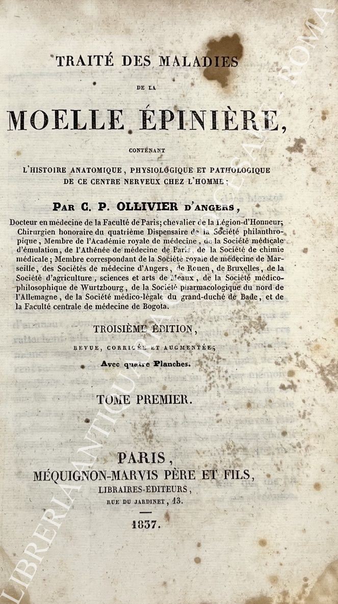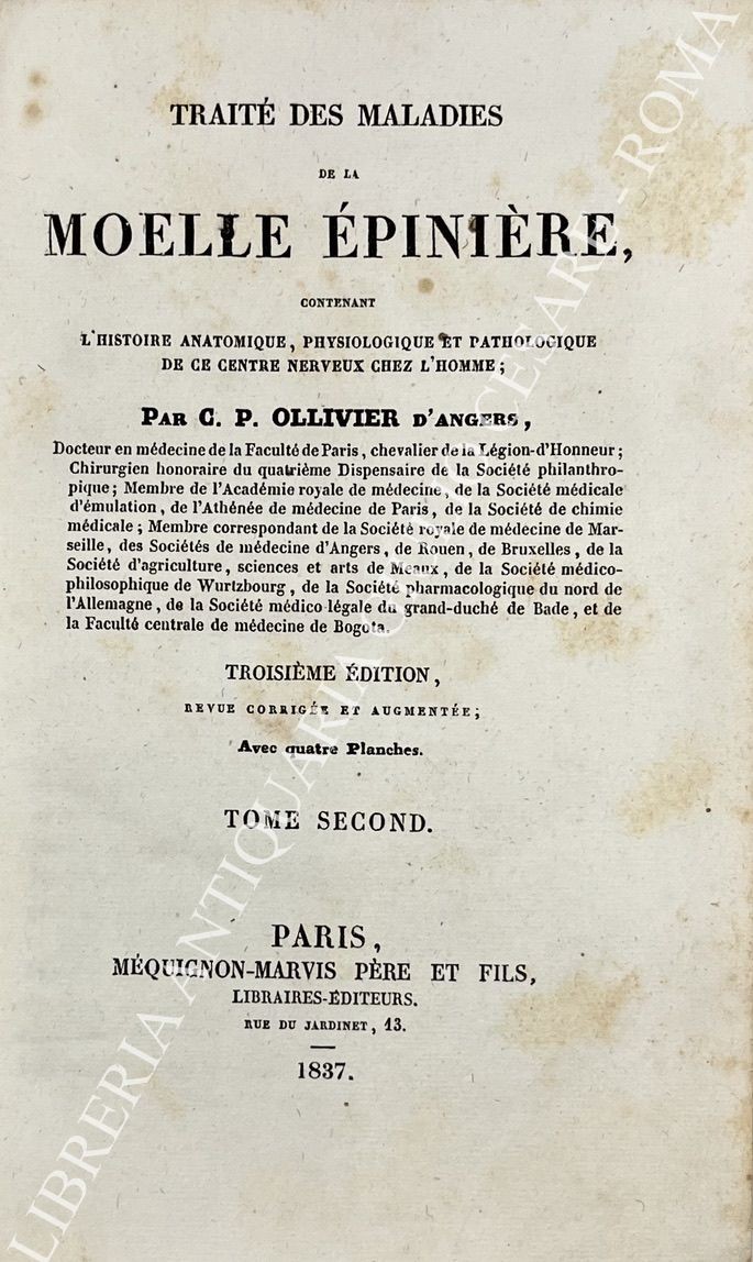 Traite des maladies de la moelle epiniere, contenant l'histoire anatomique, physiologique et pathologique de ce centre nerveux chez l'homme
