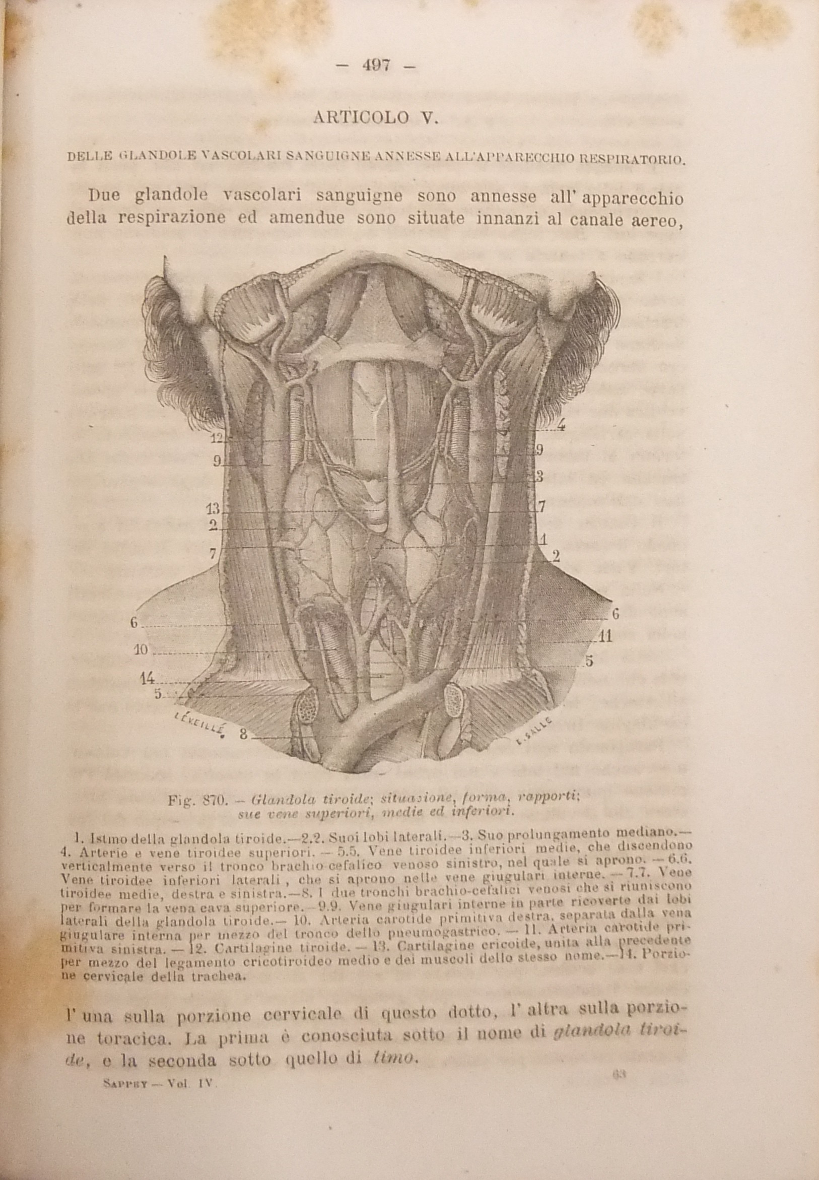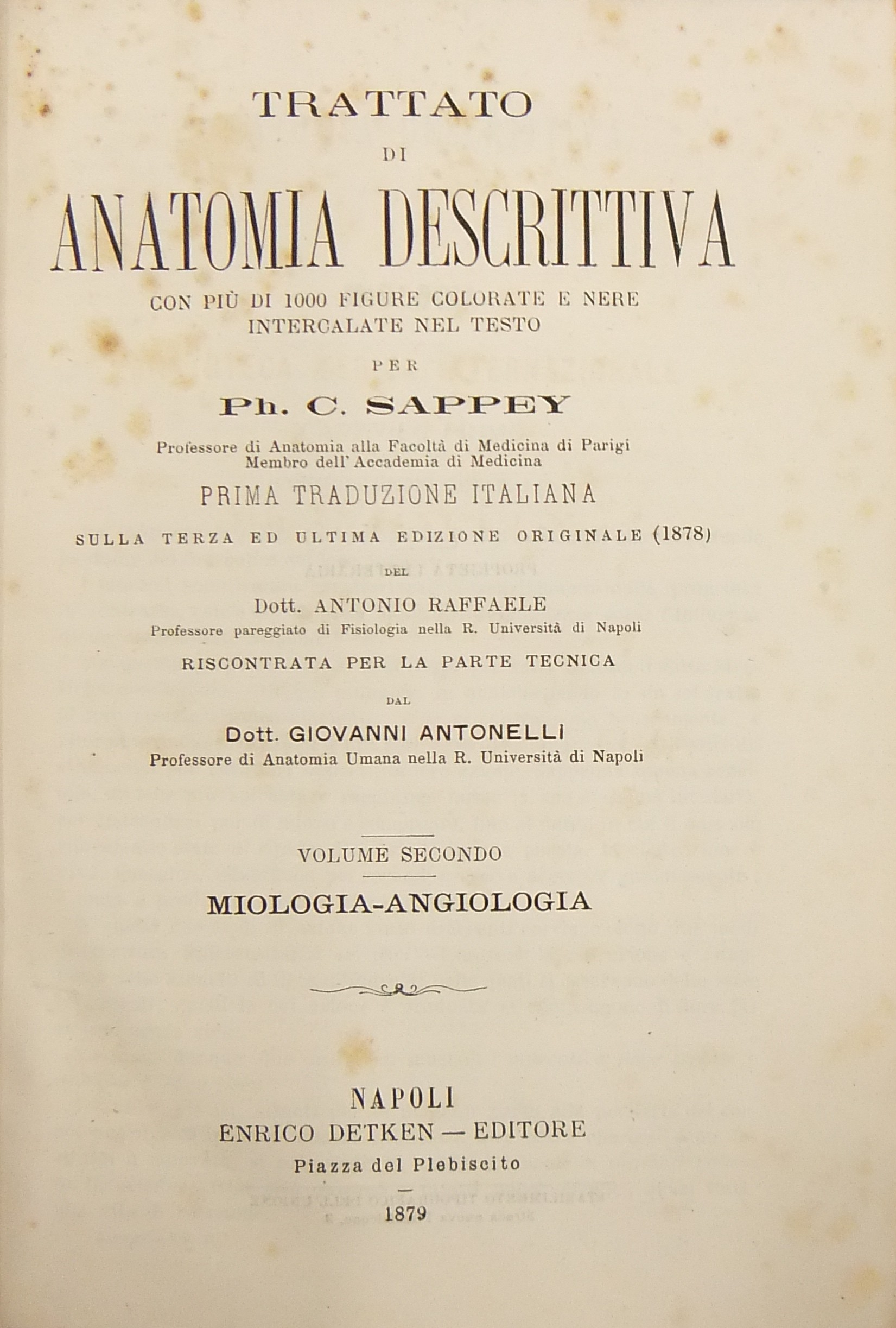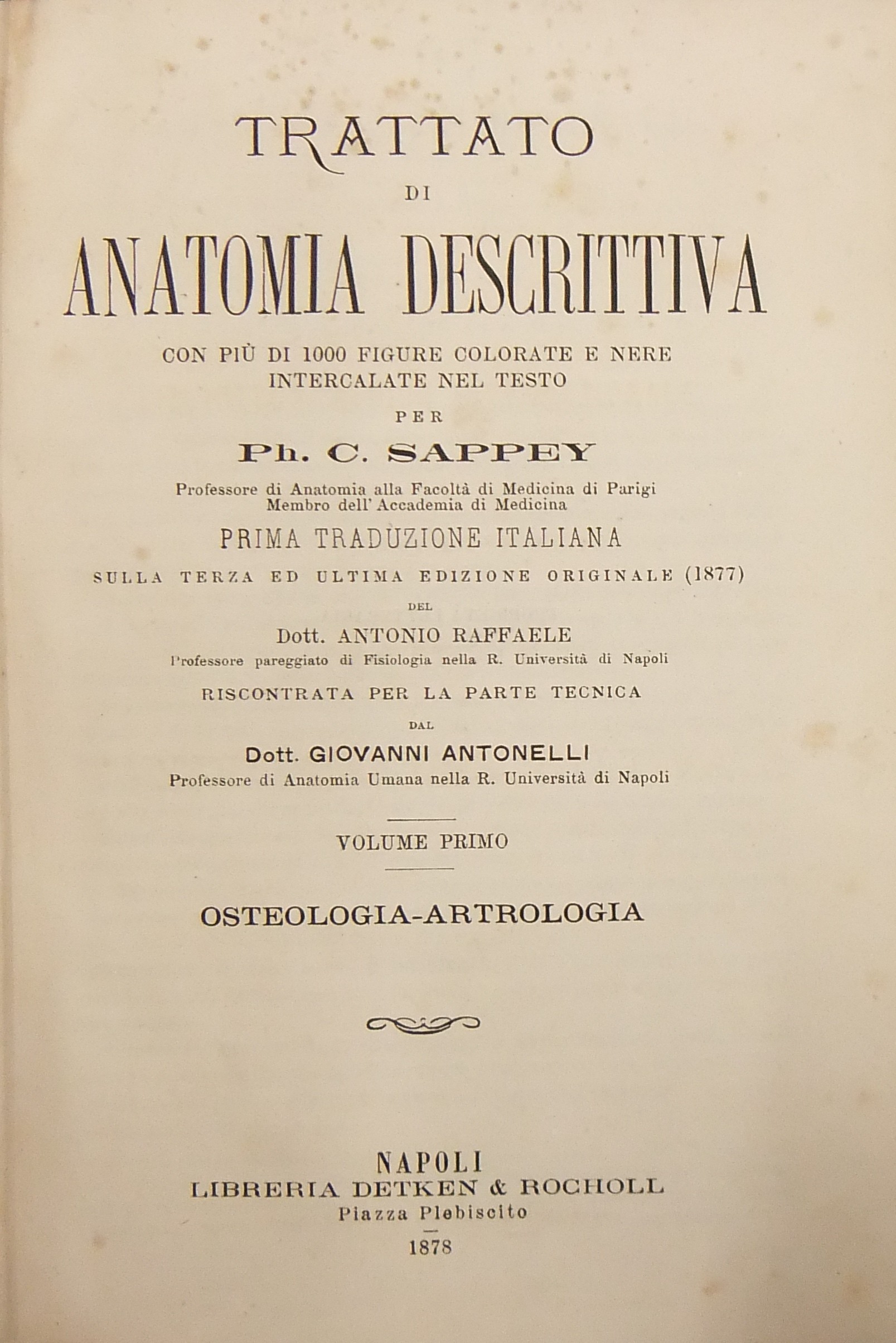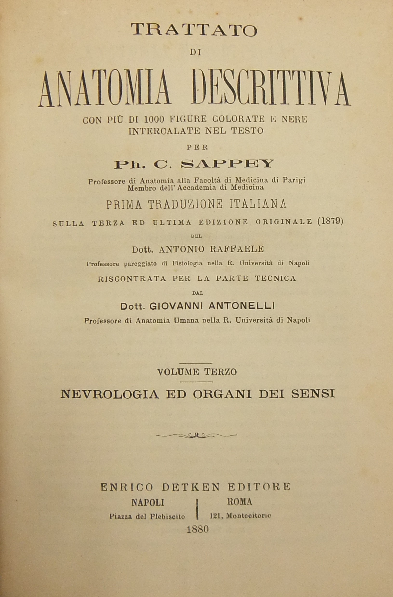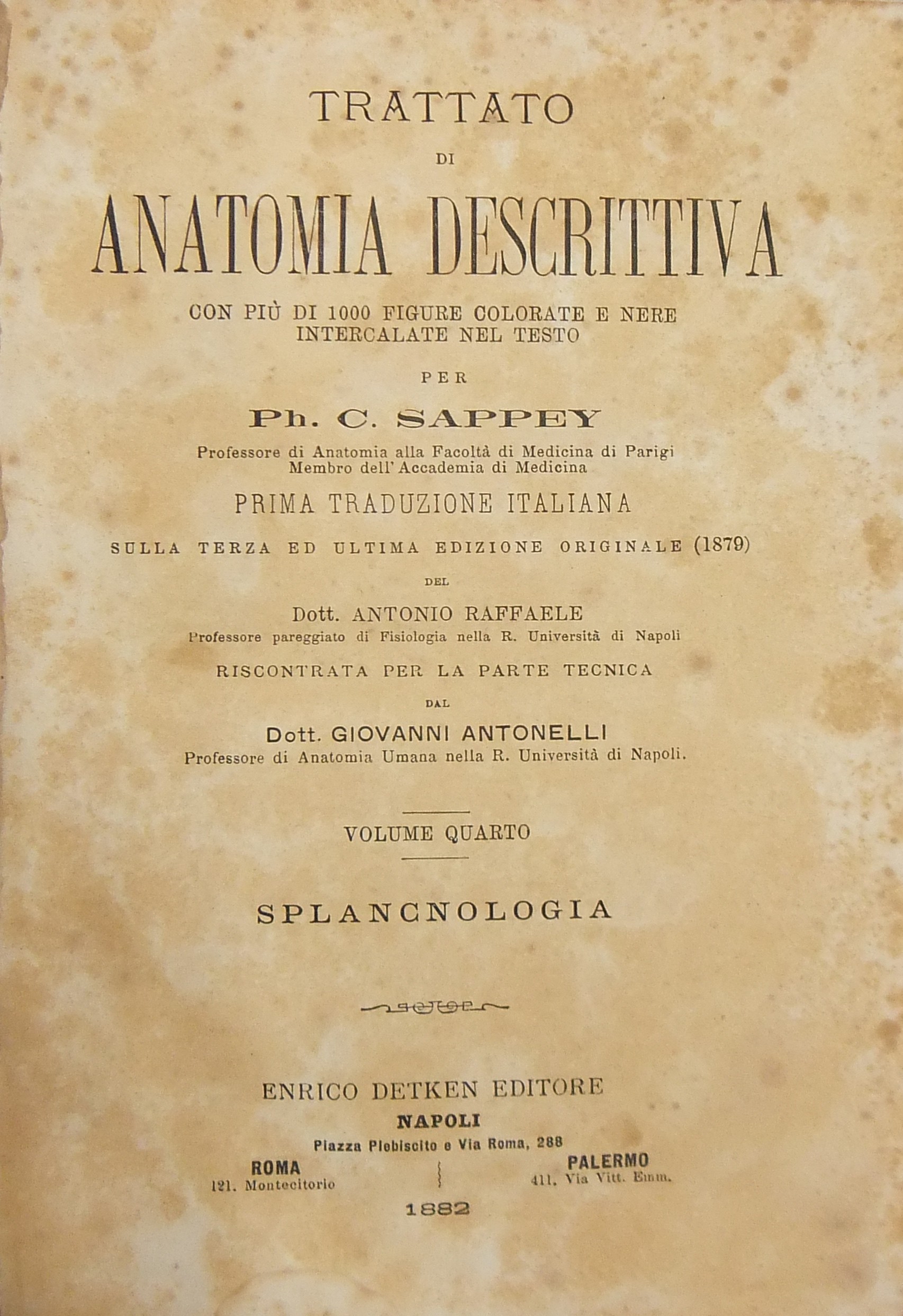 Trattato di anatomia descrittiva con più di 1000 figure colorate e nere intercalate nel testo... Vol. I - Osteologia - Artrologia; Vol. II - Miologia - Angiologia; Vol. III - Nevrologia ed organi dei sensi; Vol. IV - Splancnologia