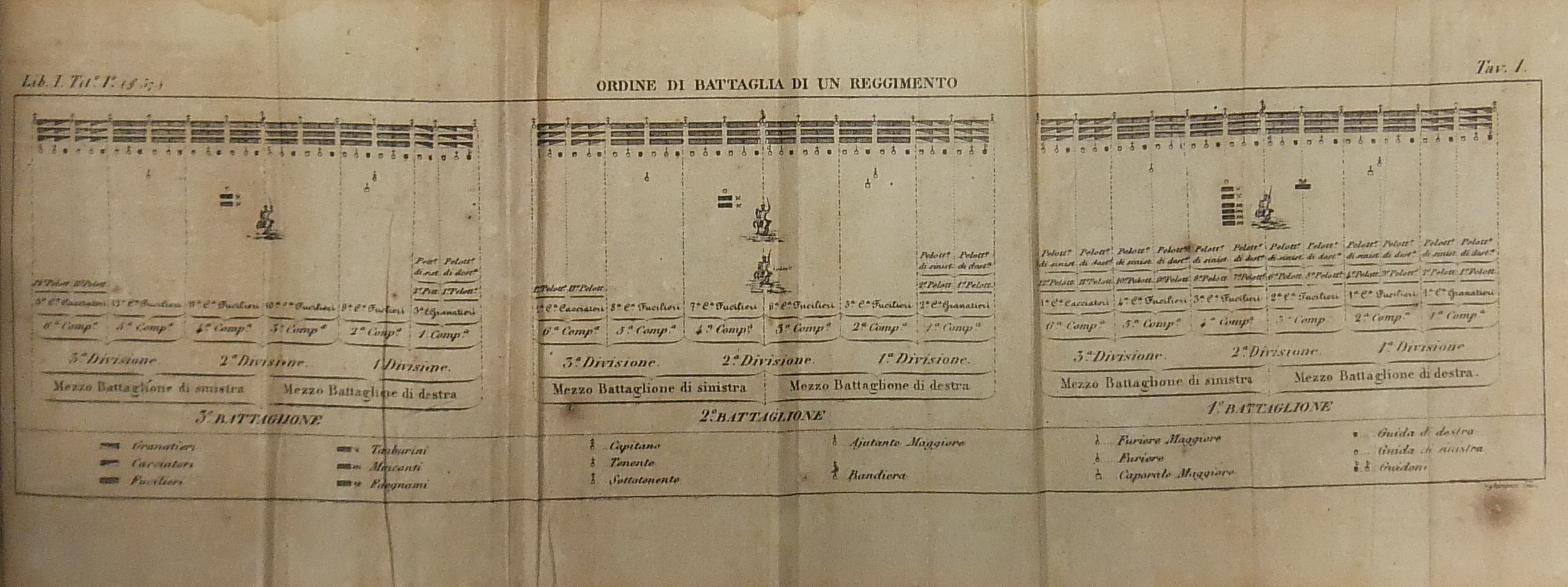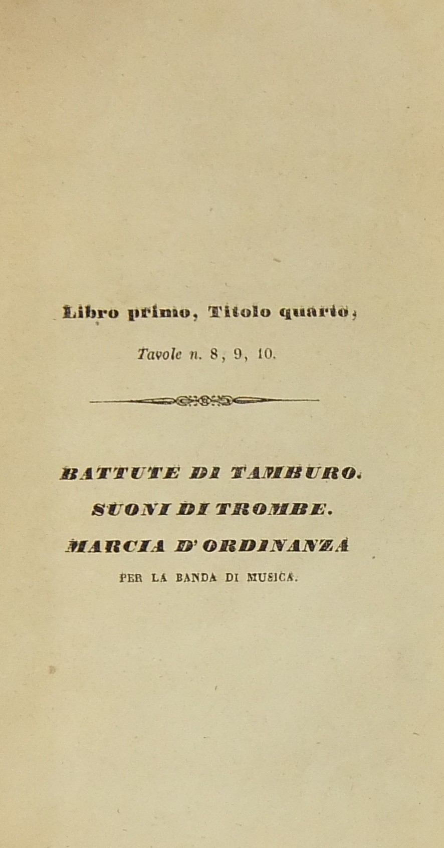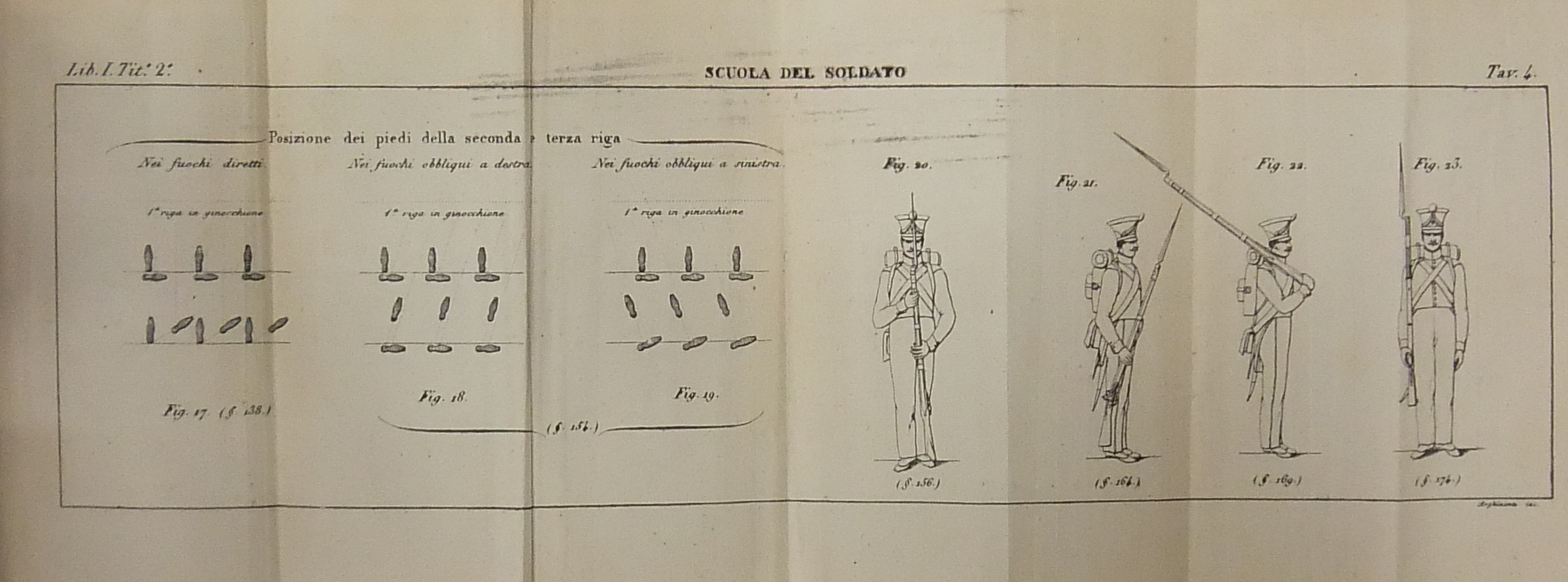 Regolamento del 16 di gennaio 1838 per l'esercizio e le evoluzioni della fanteria. Libro primo - Instruzione dei reggimenti ordine di battaglia disposizioni diverse scuole del soldato del pelottone del tiro maneggio d'arme pei bass'uffiziali instruzione pel tamburino maggiore